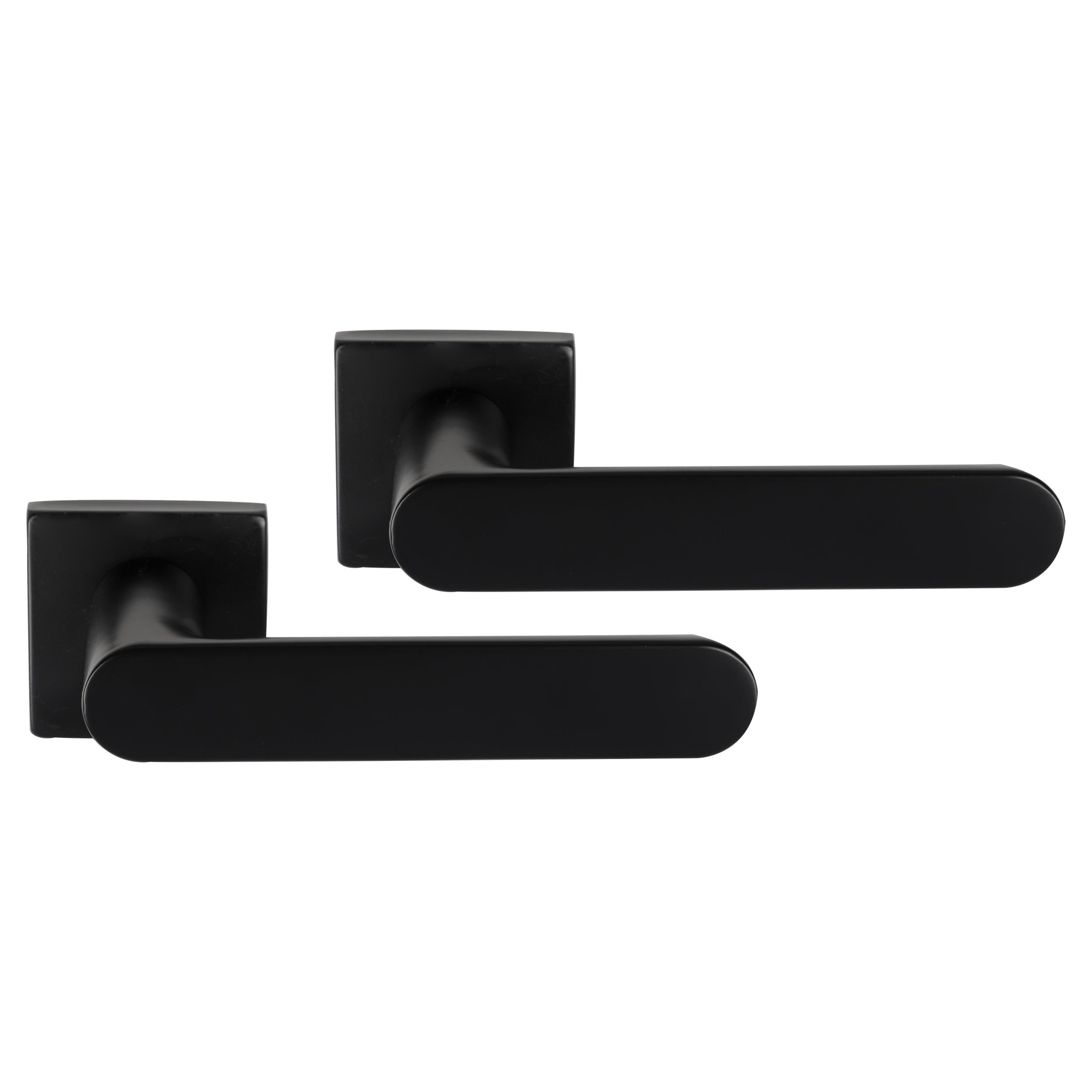 Deze set wordt geleverd met twee deurkrukken en twee bijpassende, vierkante rozetten, klaar voor montage op je deur. Voor deuren met sloten kun je de set uitbreiden met twee extra rozetten voor onder de deurkruk, die los verkrijgbaar zijn. Je kunt kiezen uit de volgende versies om je set te completeren: