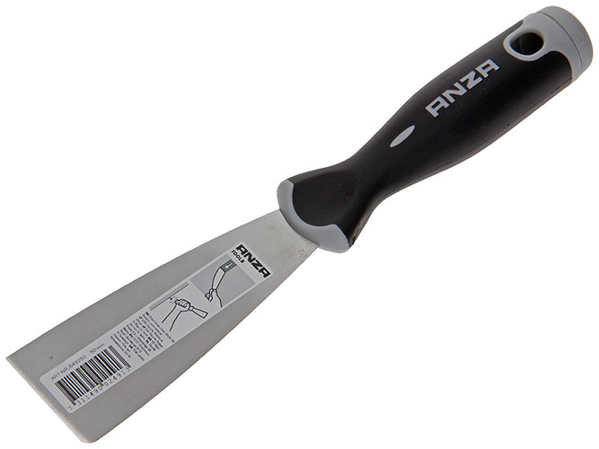 ANZA Plamuurmes: soepele, roestvrijstalen plamuurmessen voor de perfecte afwerking bij vulwerken. Het mes heeft één recht afgewerkte zijde, zodat men perfect in de hoeken kan werken, de andere zijde is afgerond om af te kitten. Het comfortabele softgrip handvat maakt het gebruiksgemak compleet.