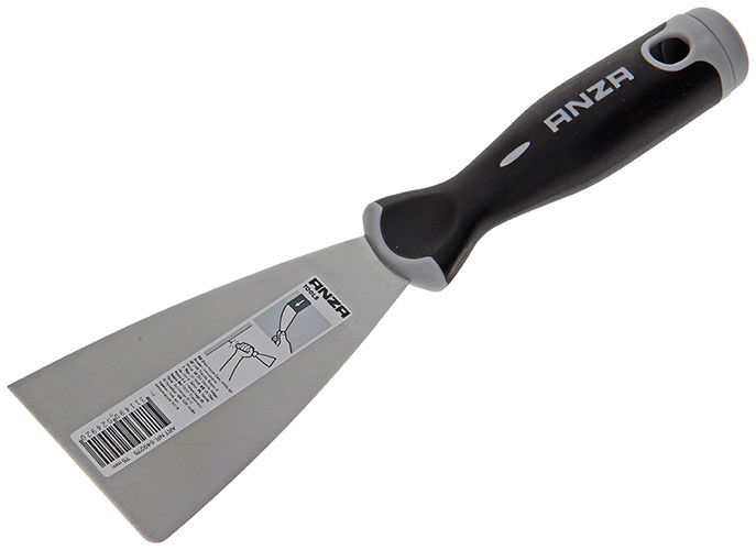 ANZA Plamuurmes: soepele, roestvrijstalen plamuurmessen voor de perfecte afwerking bij vulwerken. Het mes heeft één recht afgewerkte zijde, zodat men perfect in de hoeken kan werken, de andere zijde is afgerond om af te kitten. Het comfortabele softgrip handvat maakt het gebruiksgemak compleet.