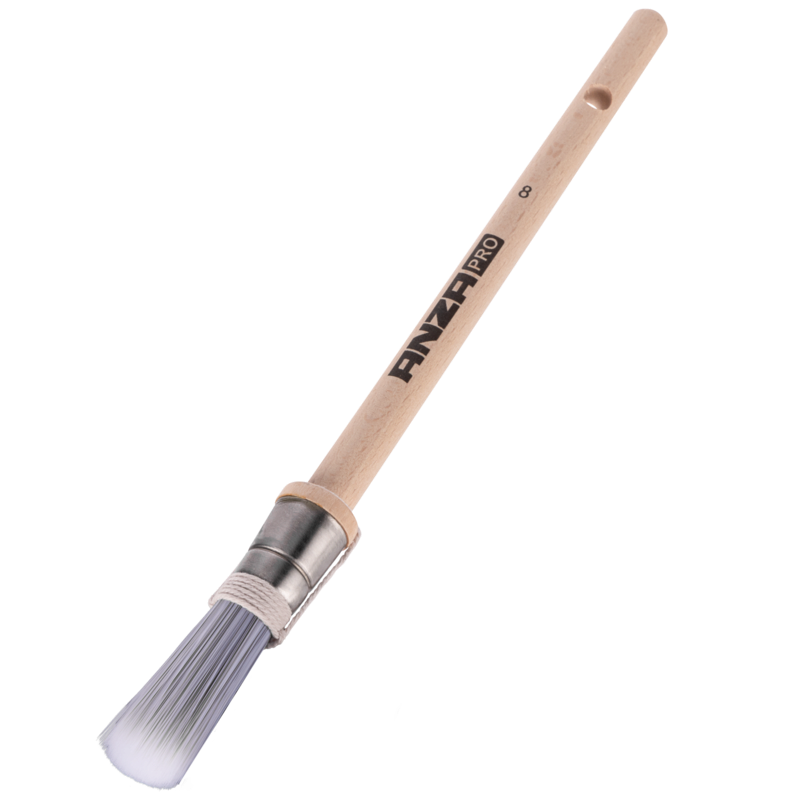 De volgegoten rvs/inox bus voorkomt insijpelen van water en/of terpentine, terwijl de kwalitatieve beukenhouten steel voor een fijne grip zorgt.