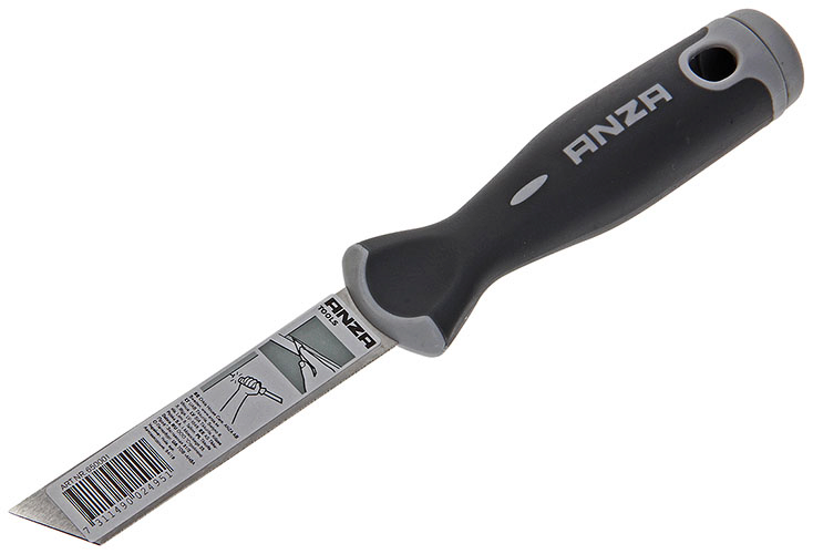 ANZA Stopverfmes: handig bij het herstellen van gaten of scheuren in houtwerk. Het stevige mes is vervaardigd uit roestvrijstaal en heeft een handvat met ergonomische softgrip.