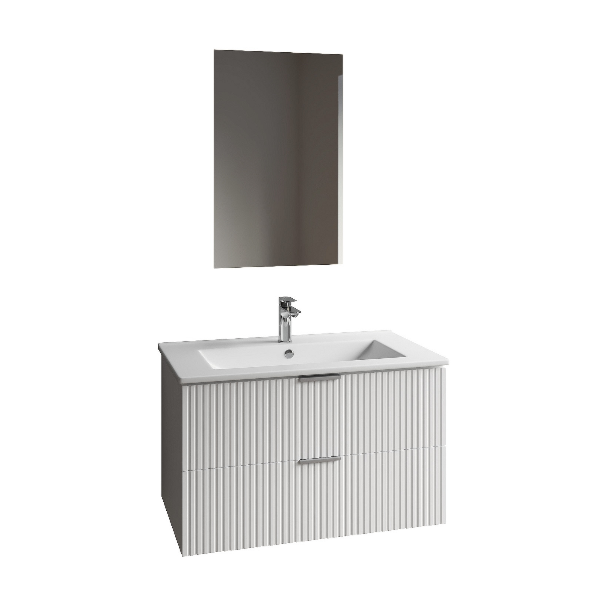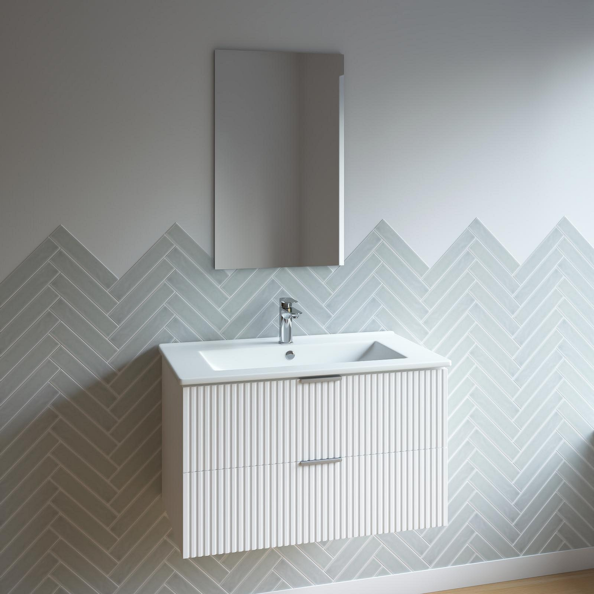 Aurlane Badmeubelset Amelia 80cm - Wit - Met Spiegel en Wastafel - Met 2 Lades - Met Witte Wastafel