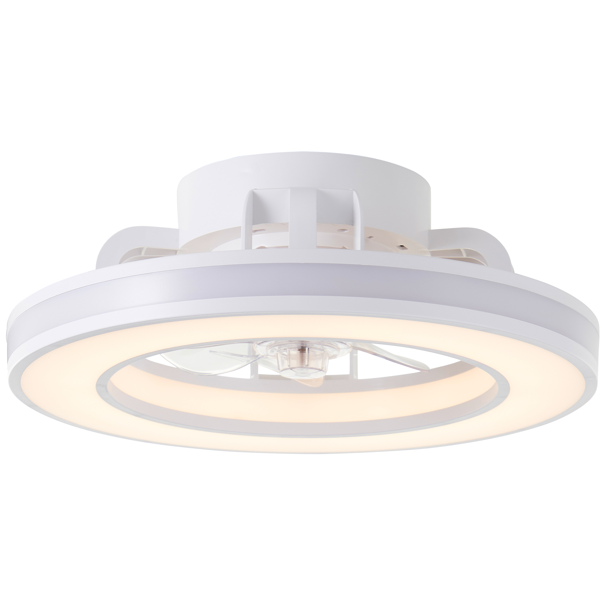 Mondello is een witte plafondventilator met lamp van Brilliant. De ingebouwde ledlichtbron zorgt voor een dimbaar, aanpasbaar wit en gekleurd licht met een maximale lichtopbrengst van 3100 lumen en is uitgerust met een nachtlichttimer. Je kunt de instellingen beheren met de meegeleverde afstandsbediening. Mondello heeft een diameter van 41,5 centimeter.