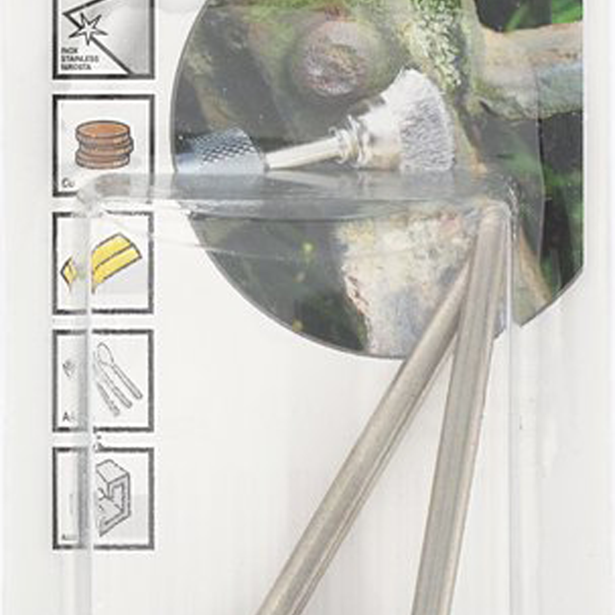 Veelzijdige borstel voor verwijderen van roest en corrosie, polijsten van metalen oppervlakken, ontbramen en vloeiend laten verlopen van naden of reinigen van elektrische componenten.