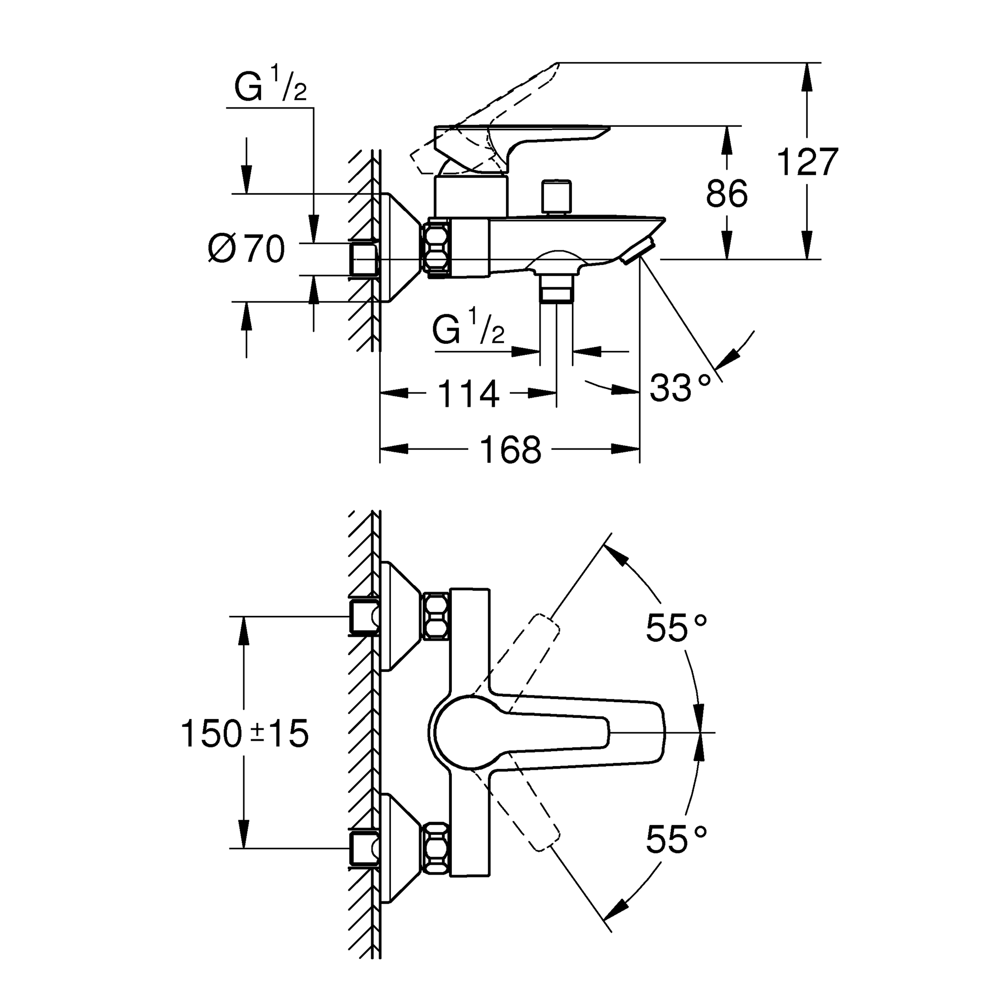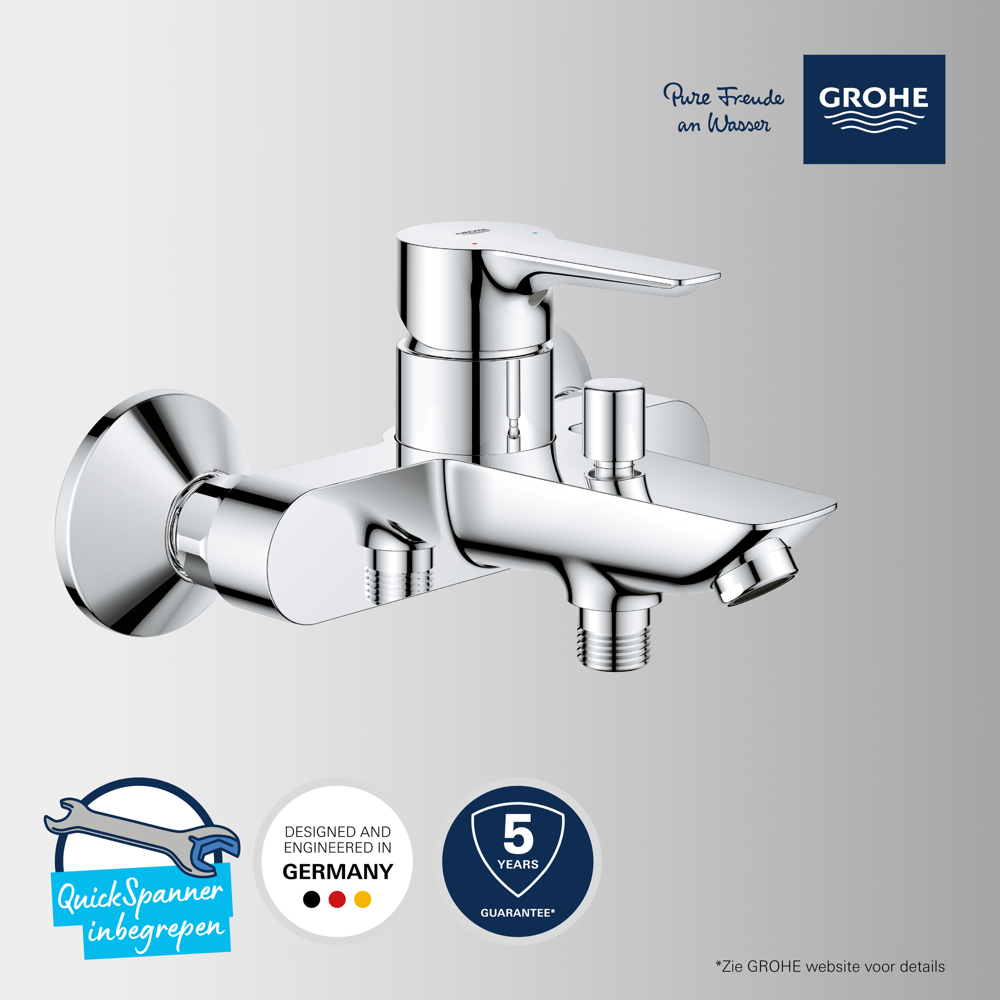Bad of douche – jij kiestDe handige omstelling laat je in één beweging wisselen van baduitloop naar handdouche. Voeg een Grohe handdouche toe voor een complete set.