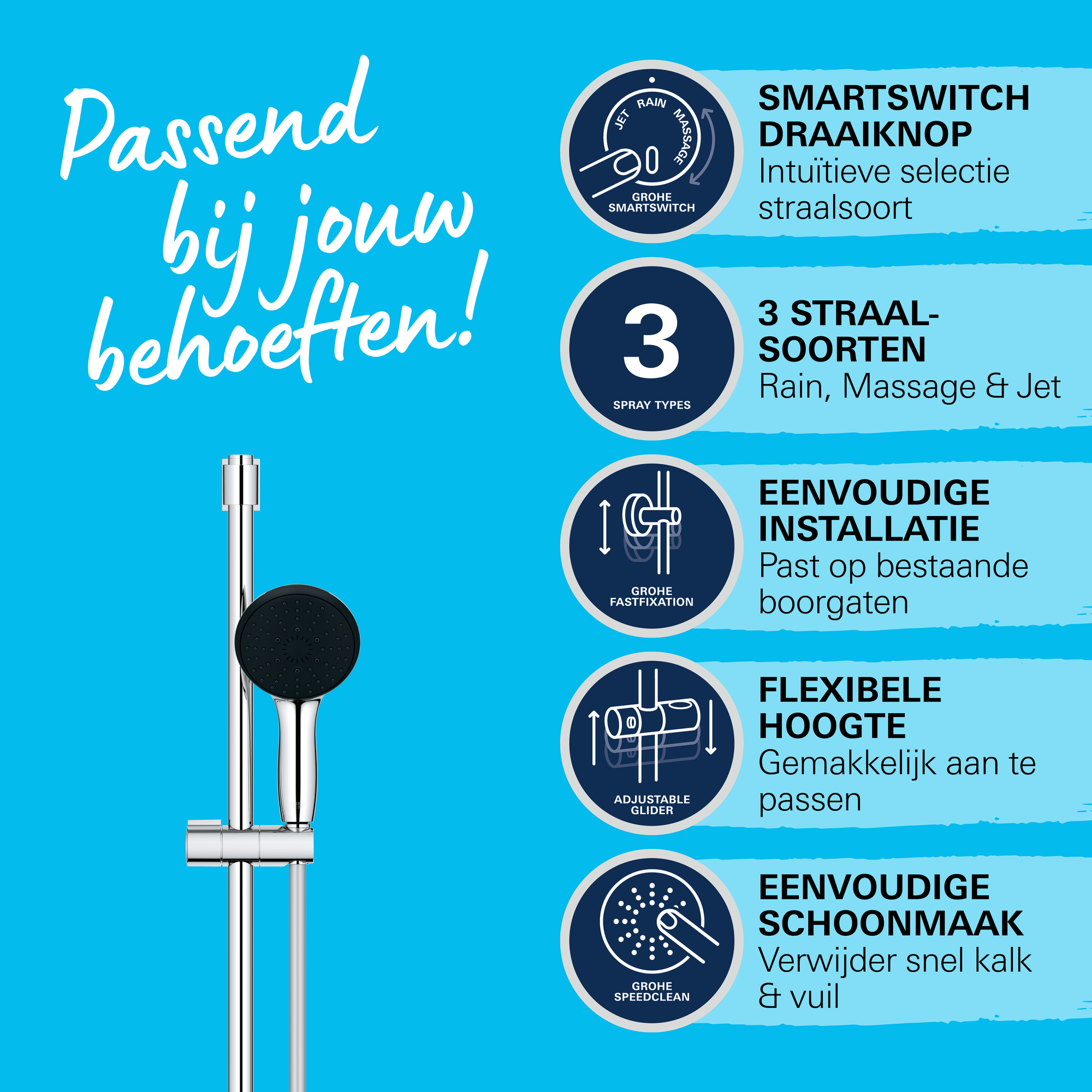 Grohe douchegarnituur Alira Start – 3 straalsoorten