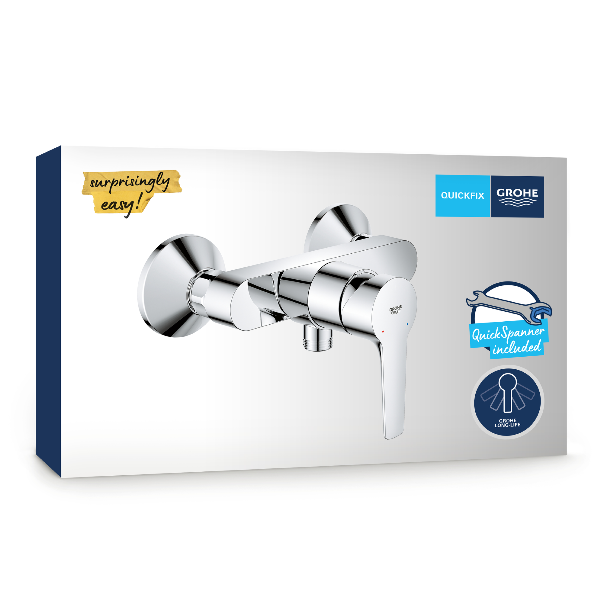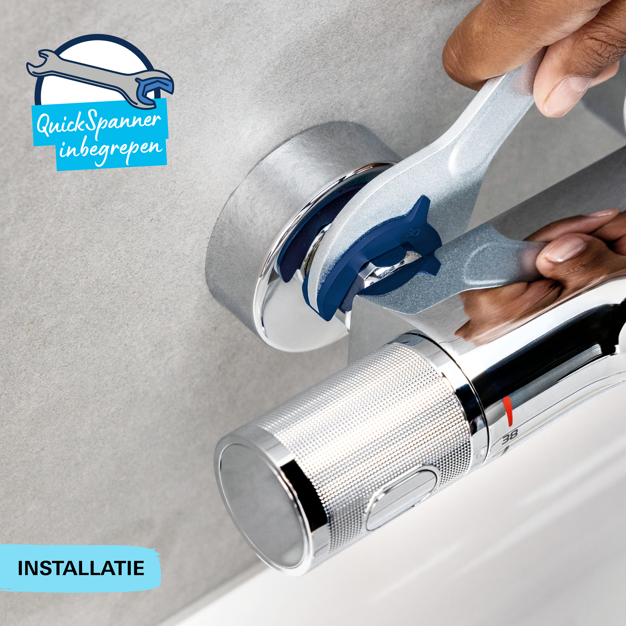Installatie in een handomdraaiDe duurzame Grohe Long-Life chroomlaag blijft jarenlang mooi. Met de QuickSpanner monteer je de kraan eenvoudig zelf.