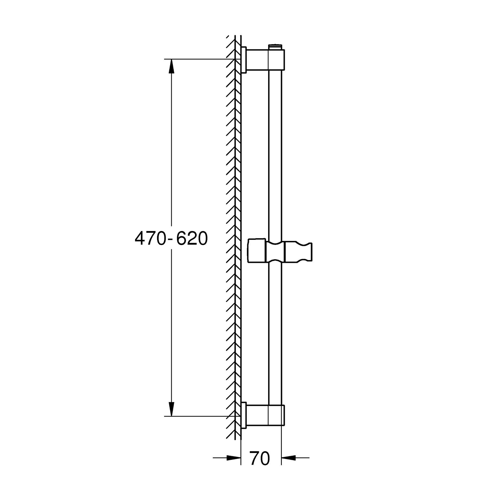 Deze universele GROHE Vitalio chromen doucheglijstang is 600mm lang en kan gecombineerd worden met alle GROHE handdouches. Met een krasbestendige GROHE Long-Life Finish blijft het chromen oppervlak mooi glanzend zonder kras.