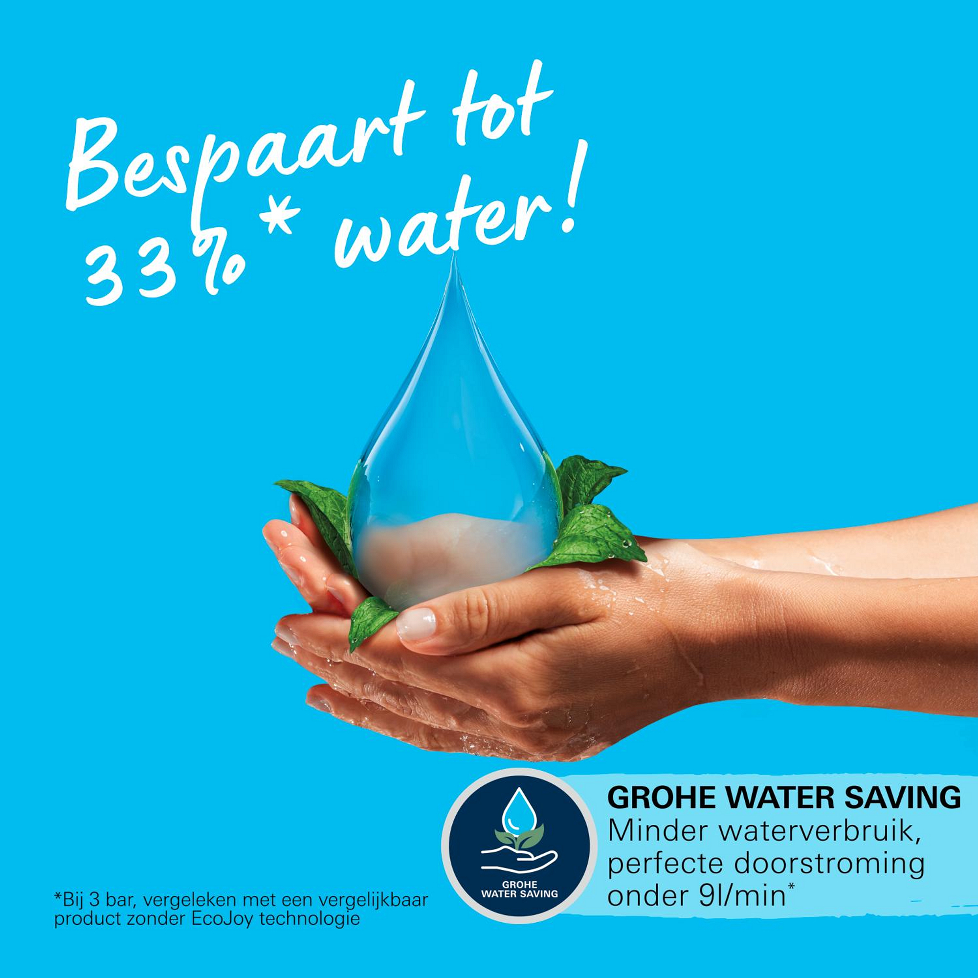- Tot 50% waterbesparing dankzij GROHE EcoJoy technologie