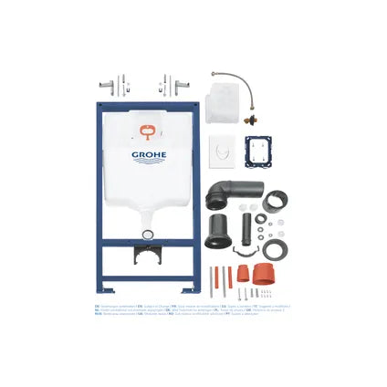 Dit inbouwreservoir uit de Rapid SL-reeks bevat de Grohe Whisper-technologie, waarmee geluidsoverdracht naar aangrenzende kamers wordt voorkomen. Met de Grohe EcoJoy dubbele spoeling kan je jouw waterverbruik terugbrengen met wel 50%. De montage van dit systeem is simpel en zonder gedoe: je hebt geen gereedschap nodig voor het aansluiten van de watertoevoer, de inspectieschacht en de slang. Dankzij het Grohe QuickFix-concept heb je binnen de kortste keren het stalen frame gemonteerd. Het frame is getest op een draagkracht van meer dan 400kg, waardoor het compleet veilig is voor jouw badkamer. Je kan het frame voor een massieve wand of achter een gipsmuur plaatsen, waarmee het uit het zicht hangt en jouw badkamerreiniging vereenvoudigt. Deze set wordt geleverd inclusief bedieningsplaat Skate Air.