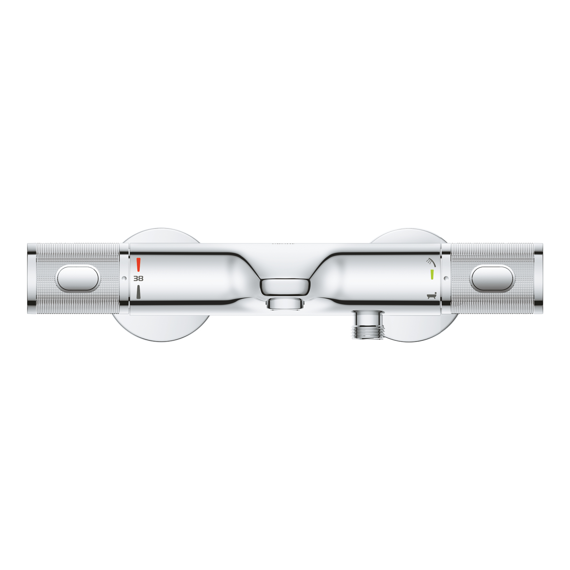 De thermostatische badmengkraan Precision Feel van Grohe past in iedere badkamer. De TurboStat technologie zorgt direct voor de gewenste temperatuur en houdt deze de gehele douche constant. De temperatuur blijft op een veilige 38 ° C, tenzij je de SafeStop indrukt en draait voor een hogere watertemperatuur. Wel zo veilig.