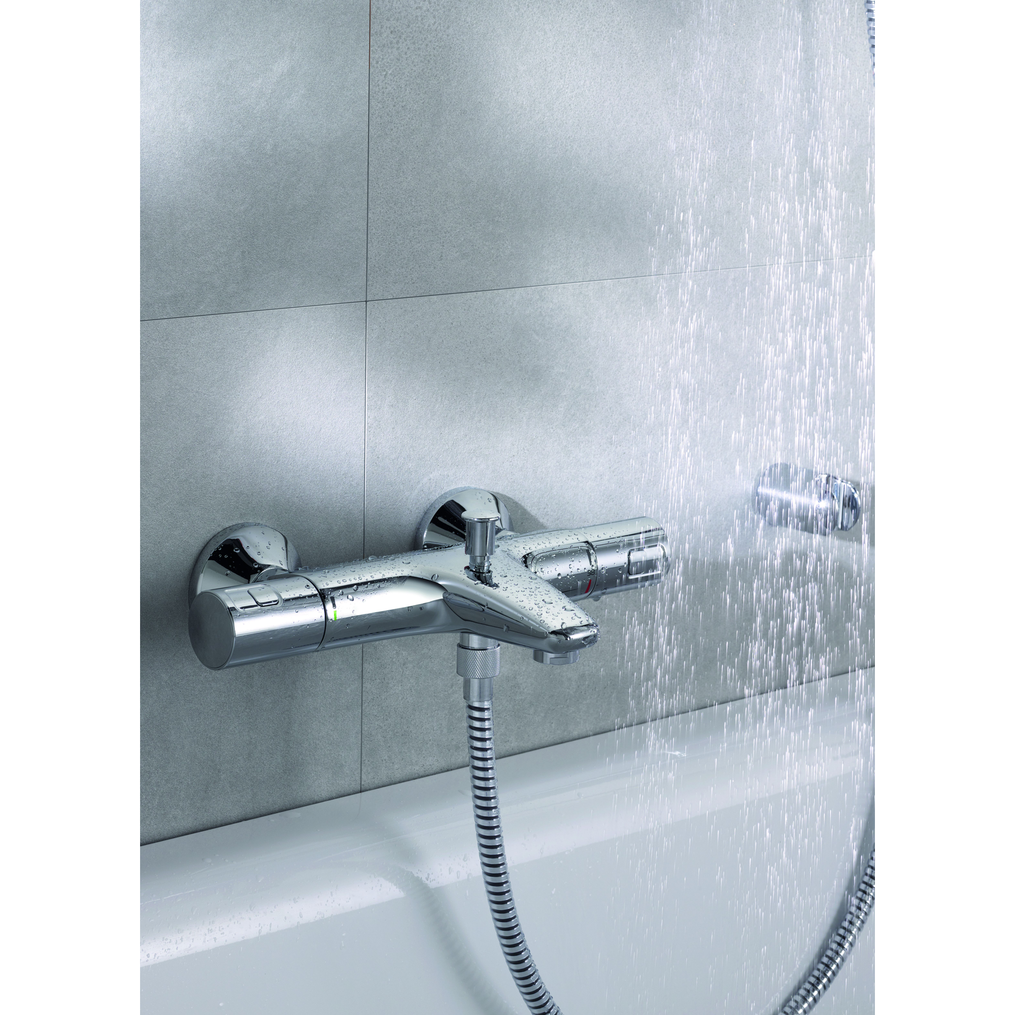 Met de thermostatische badmengkraan Precision Start van Grohe hoef je nooit meer je bad bij te vullen met koud of warm water om de temperatuur goed te krijgen. Dankzij TurboStat is het water namelijk bijna direct op temperatuur. Dit kan je makkelijk instellen met de duidelijke EasyLogic aanduiding op de kraan. SafeStop zorgt er vervolgens voor dat de temperatuur van het water daarop begrensd blijft en zo de gevoelige huid beschermt tegen te heet water.