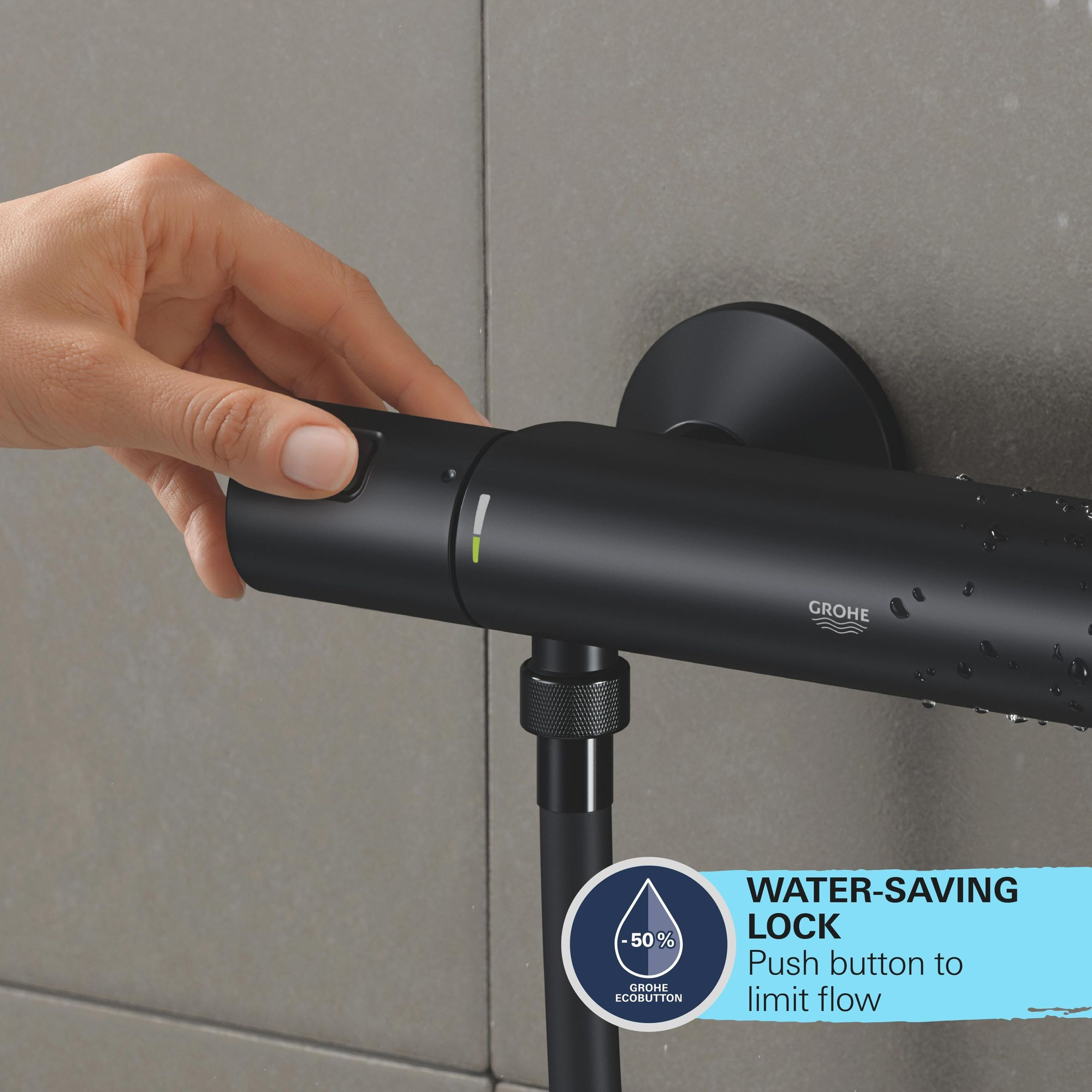 De innovatieve Grohe EcoButton stelt je in staat om de waterstroom te regelen met een geïntegreerde eco-knop, en je kunt de eco-begrenzing afzonderlijk aanpassen voor een verantwoordelijker watergebruik.