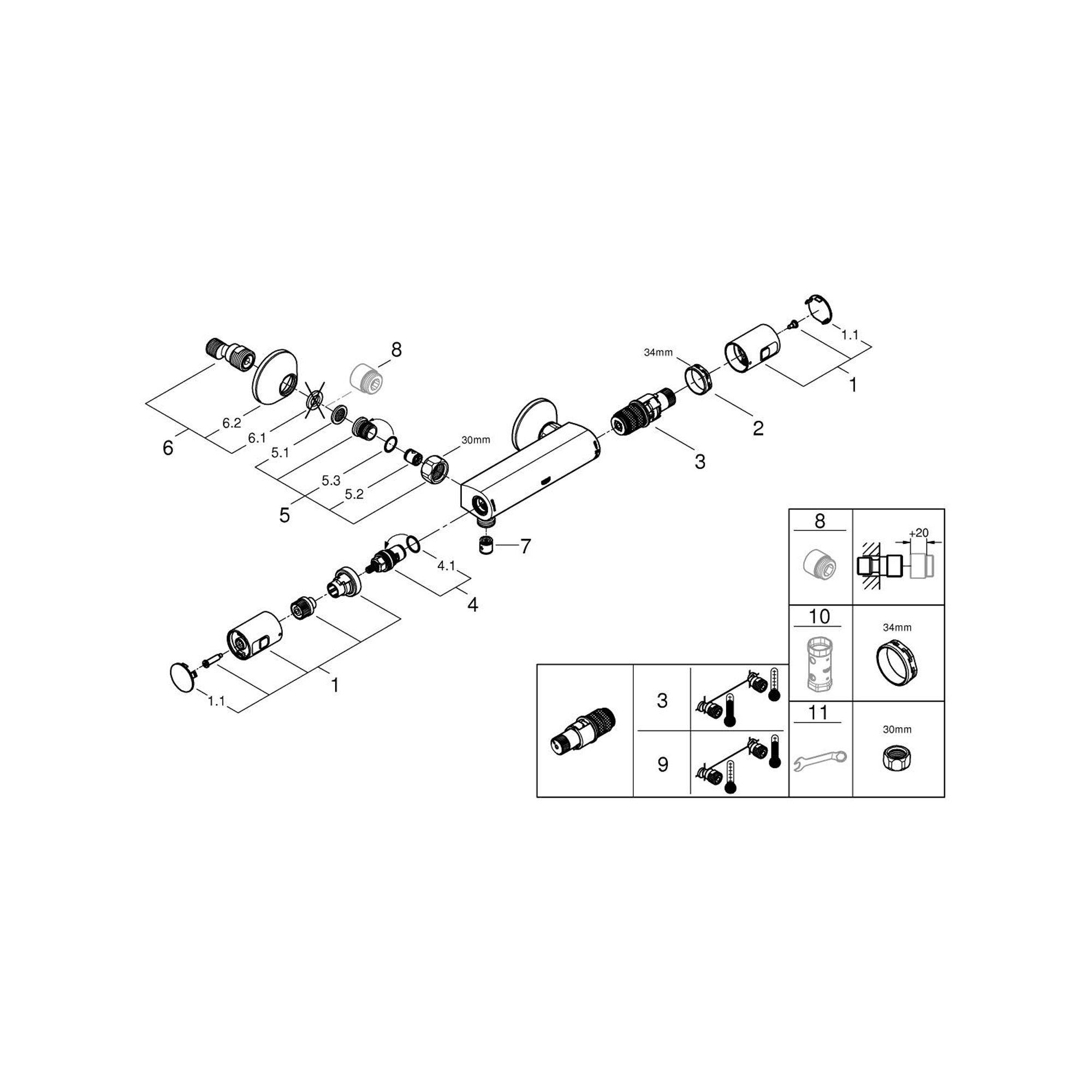 - Grohe SafeStop (Plus): bescherming tegen verbranding bij 38°C en (optioneel) 43°C