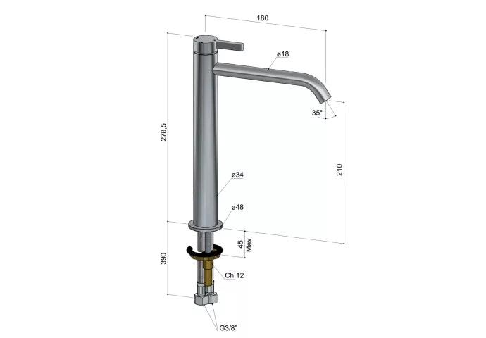 Deze prachtige wastafelmengkaan is van het merk Hotbath uit de serie Ace . De mengkraan heeft een tijdloos design en dat volledig van geborsteld messing PVD . Dankzij de PVD coating heeft de kraan een blijvende mooie kleur. De coating zorgt ook voor een perfecte glans, slijtvastheid en uitmuntende krasbestendigheid. Door de hoge uitloop is het een ruim design voor een strakke uitstraling. De kraan is gemaakt van hoogwaardig messing . kwaliteit is een kern waarde van Hotbath dus hier zal u zeker niet in mis slaan. Deze kraan is duurzaam door zijn koude start dit houd in wanneer u de kraan opent in de neutrale stand geeft de hij alleen koud water. De CV slaat niet aan en dat bespaart energie. De kraan beschik over een warm en koud aansluiting en wanneer u de hendel bedient kunt u de door u gewenste temperatuur erg gemakkelijk instellen. De kraan kent een hoogte van 28 cm en een Lengte uitloop van 18 cm. De uitloop hoogte van deze kraan is 21 cm.