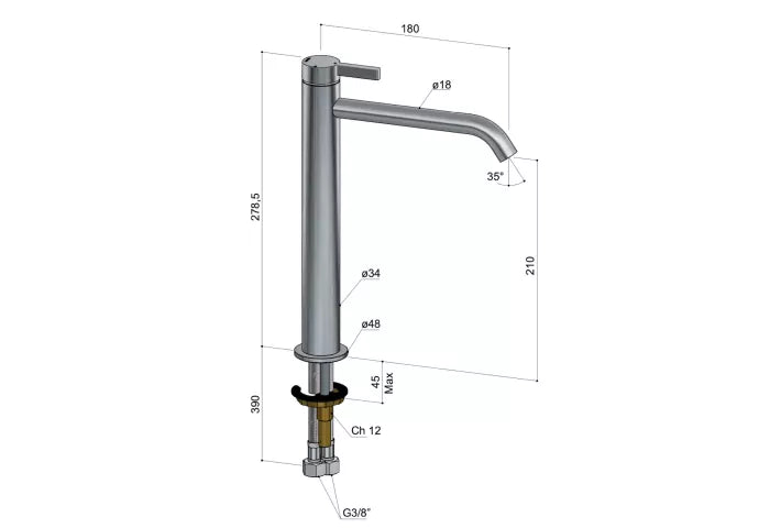 Deze prachtige wastafelmengkaan is van het merk Hotbath uit de serie Ace . De mengkraan heeft een tijdloos design en dat volledig van geborsteld Zwart PVD . Dankzij de PVD coating heeft de kraan een blijvende mooie kleur. De coating zorgt ook voor een perfecte glans, slijtvastheid en uitmuntende krasbestendigheid. Door de hoge uitloop is het een ruim design voor een strakke uitstraling. De kraan is gemaakt van hoogwaardig messing . kwaliteit is een kern waarde van Hotbath dus hier zal u zeker niet in mis slaan. Deze kraan is duurzaam door zijn koude start dit houd in wanneer u de kraan opent in de neutrale stand geeft de hij alleen koud water. De CV slaat niet aan en dat bespaart energie. De kraan beschik over een warm en koud aansluiting en wanneer u de hendel bedient kunt u de door u gewenste temperatuur erg gemakkelijk instellen. De kraan kent een hoogte van 28 cm en een Lengte uitloop van 18 cm. De uitloop hoogte van deze kraan is 21 cm.