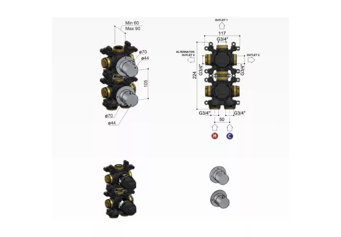 Op zoek naar een design inbouw douchekraan? Voor een luxe uitstraling in uw badkamer is deze thermostaat de prefecte keus. De thermostaat heeft een mooi en strak design omdat de knoppen los staan van elkaar. En ze zijn gemaakt van hoogwaardig messing kwaliteit is een kern waarde van Hotbath dus hier zal u zeker niet in mis slaan. Dankzij de PVD coating heeft de plafondarm een blijvende mooie kleur. De coating zorgt ook voor een perfecte glans, slijtvastheid en uitmuntende krasbestendigheid.