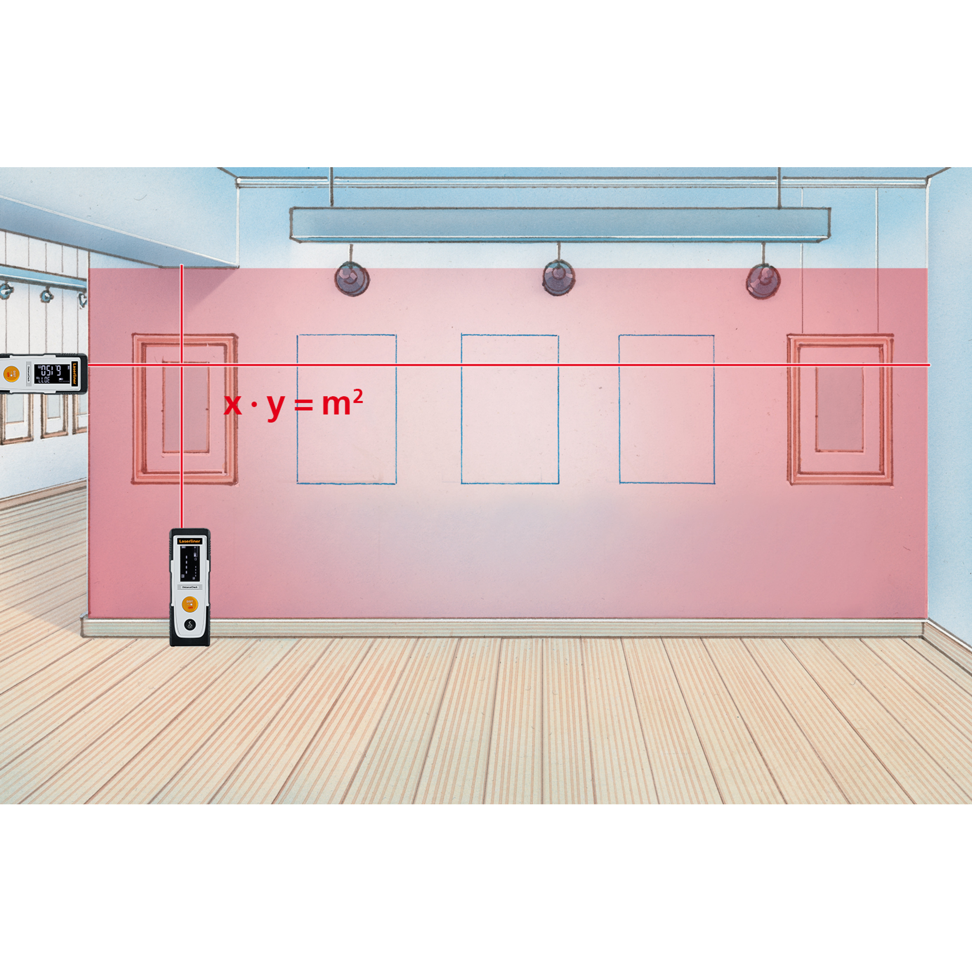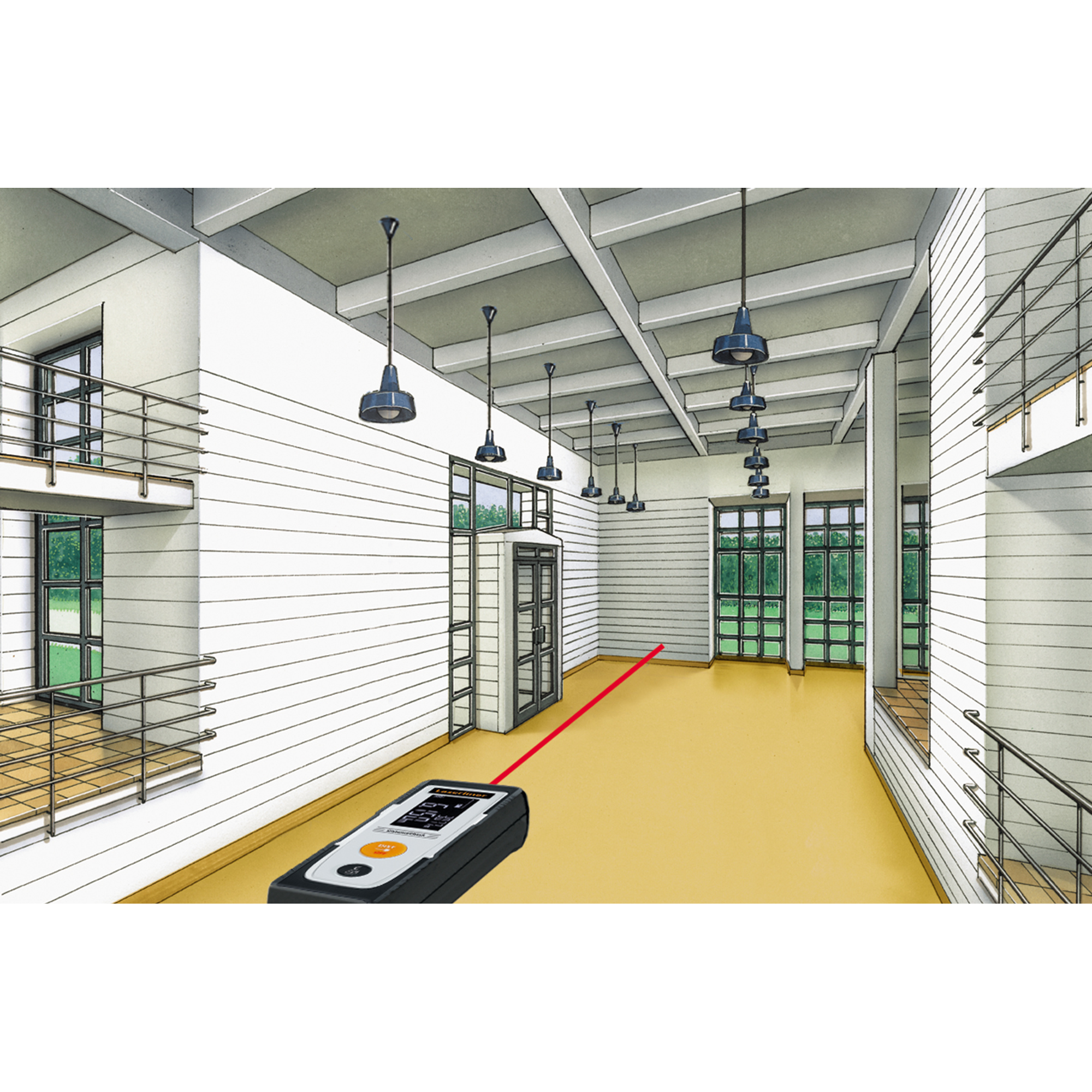 De compacte laserafstandsmeter Laserliner 25m meet nauwkeurig lengtes, oppervlakten en volumes. Het is ideaal voor het opmeten van een ruimte en het berekenen van de benodigde hoeveelheid materialen. Het apparaat biedt twee selecteerbare referentiepunten op de behuizing (voorzijde, achterzijde).