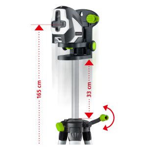 Deze automatische kruislijnlaser is ideaal voor de uitlijning van horizontale en verticale lijnen en hellingen. Dankzij de groene lasertechnologie wordt een uitstekende zichtbaarheid geboden. Een extra loodlaser en de referentiestraal maken synchroon werken op vloer en plafond mogelijk. Optische signalen waarschuwen de gebruiker als het nivelleerbereik wordt verlaten. Voor grote afstanden beschikt het apparaat over een geïntegreerde handontvangermodus. Met de in hoogte verstelbare console kan de laser op het compacte statief, direct op de wand of op metalen oppervlakken worden bevestigd. De pendelvergrendeling is bedoeld voor een veilig transport.
