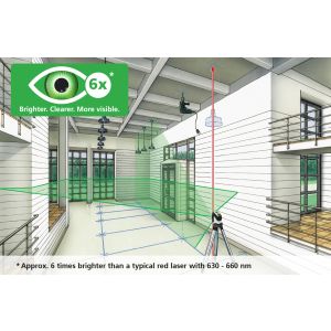 - Extreem fel, groen laserkruis vooraan in DLD-uitvoering zorgt voor lijnen van hoge kwaliteit: schoon, duidelijk en daardoor goed zichtbaar.