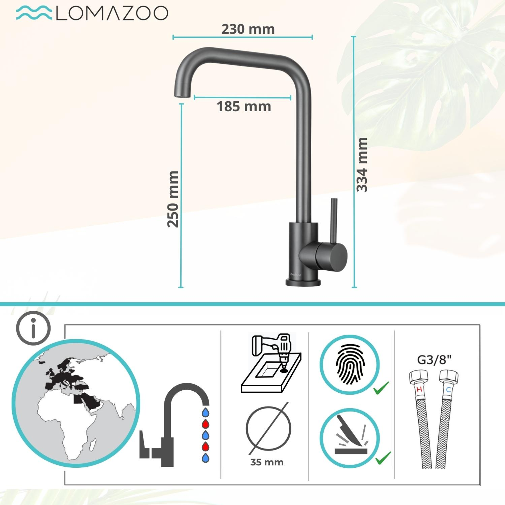- Hoogte keukenkraan: 334 mm