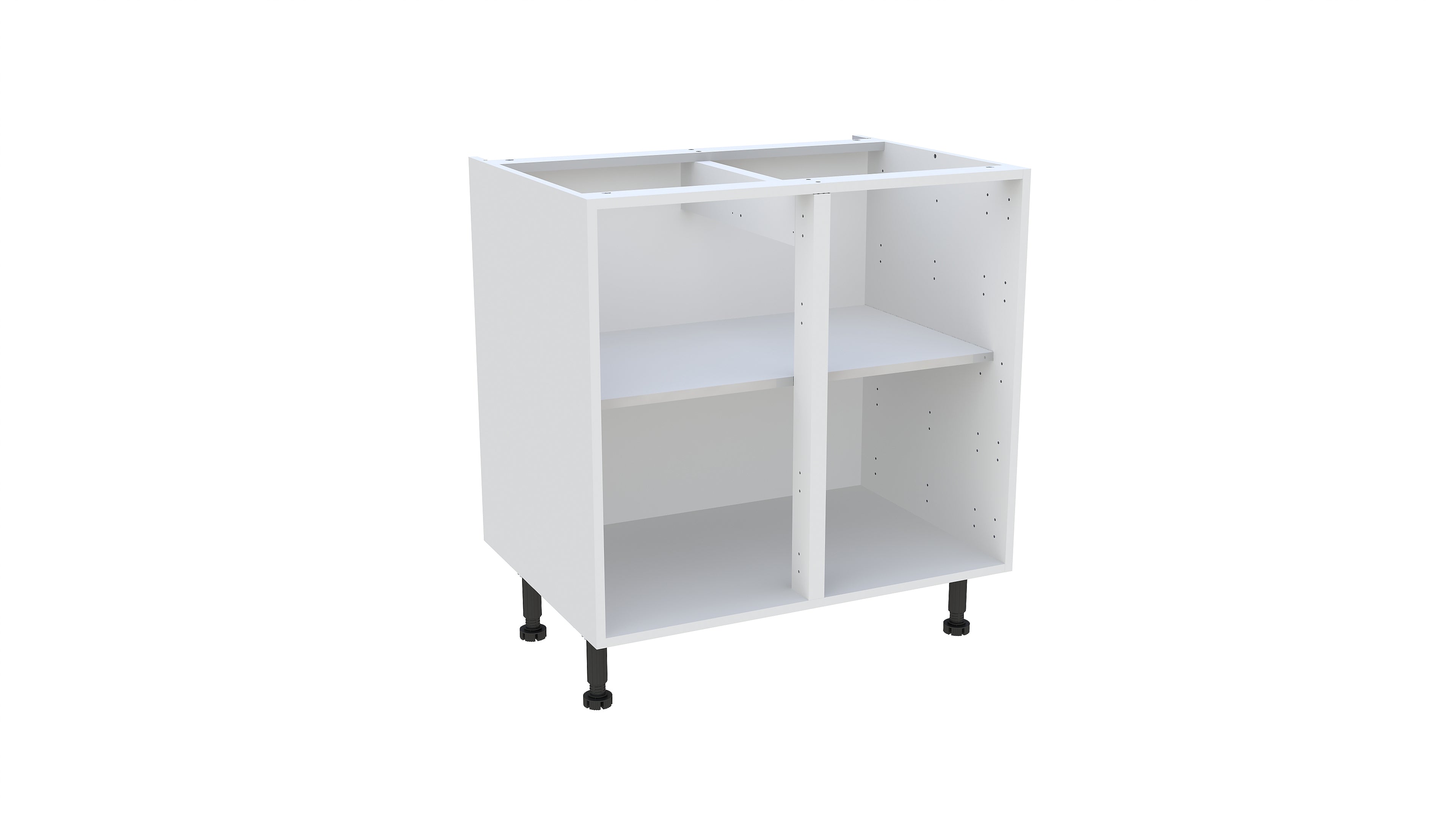 Het geheel bestaat uit een witte Modulo onderkast van 80 cm breed met lijst, een uitneembare legger en vier in hoogte verstelbare poten. Zo kun je jouw keuken op maat samenstellen. Andere elementen zijn beschikbaar in hetzelfde assortiment.