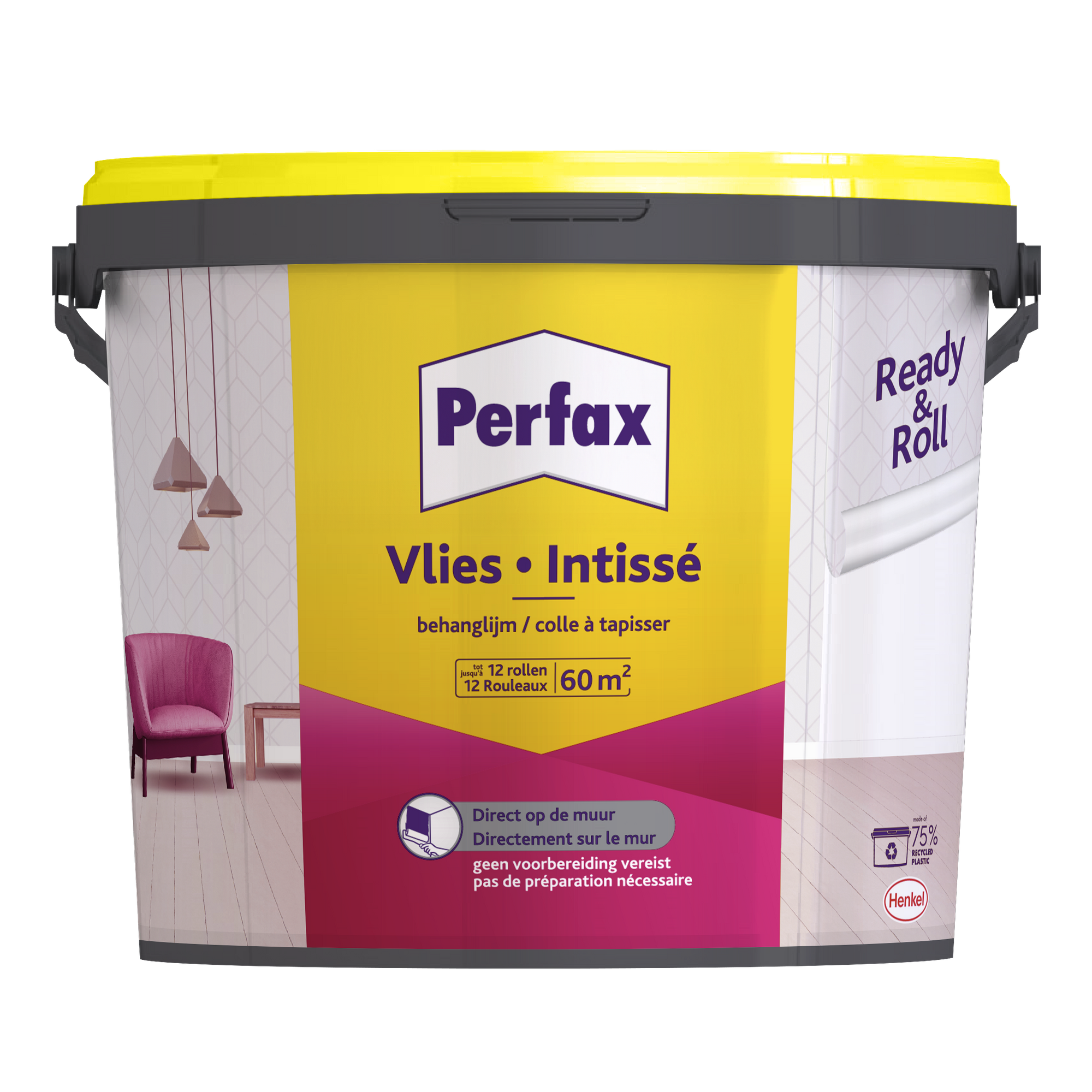 Perfax Ready & Roll vlies behanglijm 9kg is een gebruiksklare lijm, perfect voor diverse behangsoorten zoals vliesbehang, snelbehang, smartpaper® en non-woven behang met een vliesrug. Direct op de muur, eenvoudige correctie en probleemloze verwijdering. Geen gedruppel, geen knoeien, geen gedoe. Deze handige behanglijm is speciaal ontworpen voor normaal absorberende ondergronden zoals steen, beton, stucwerk, gips en cement.