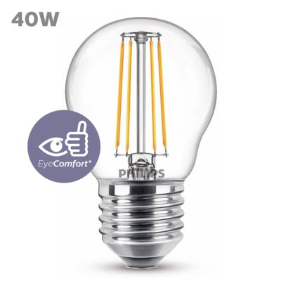 Deze lichtbron van Philips is geschikt voor lampen met een E27-fitting en heeft een diameter van 4,5 cm. De ledlichtbron van 4,3 watt geeft een warm wit licht van 470 lumen. De lamp gaat 15000 branduren mee. Deze lichtbron is niet dimbaar.