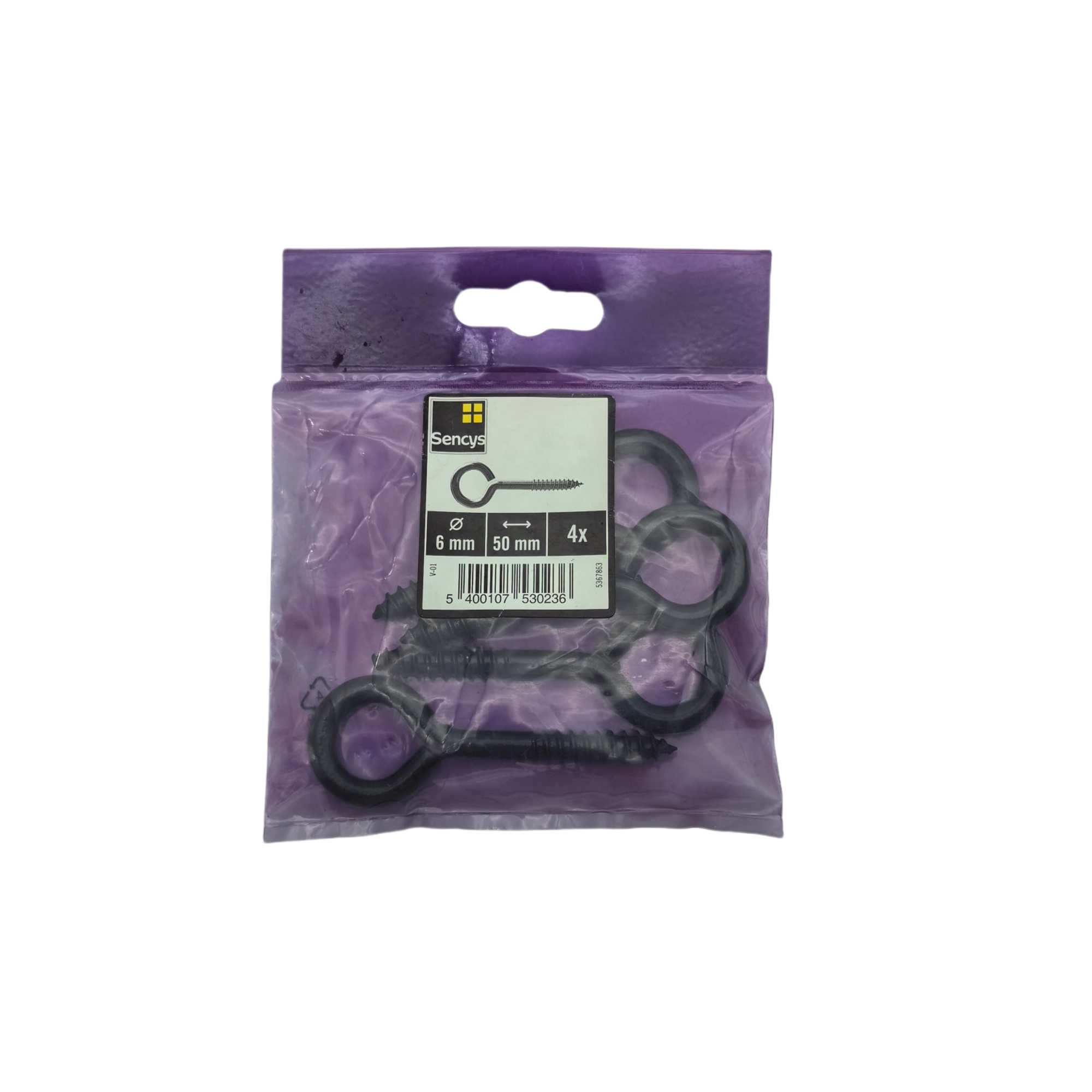 Schroefoog met een afmeting van 6 x 50mm per 4 stuks verpakt.