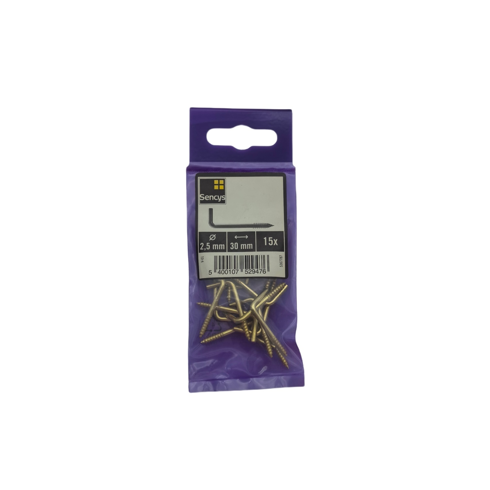 Sencys schroefduim vermessingd 2,5mm 30mm 15 stuks