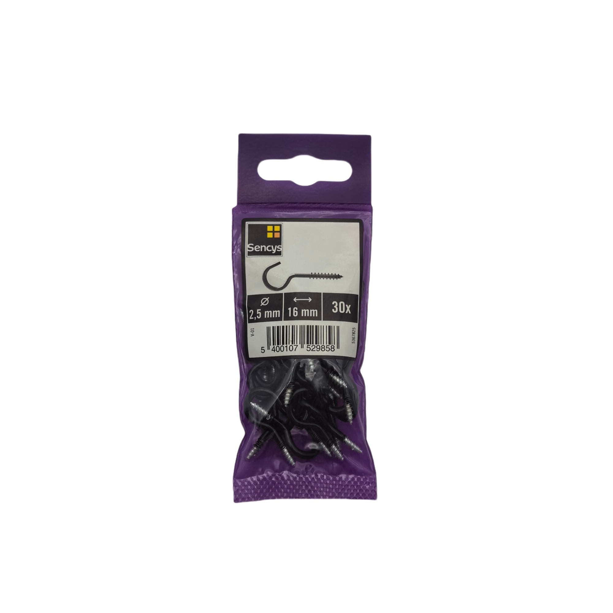 Sencys schroefhaak black coated 2,5mm 16mm 30st