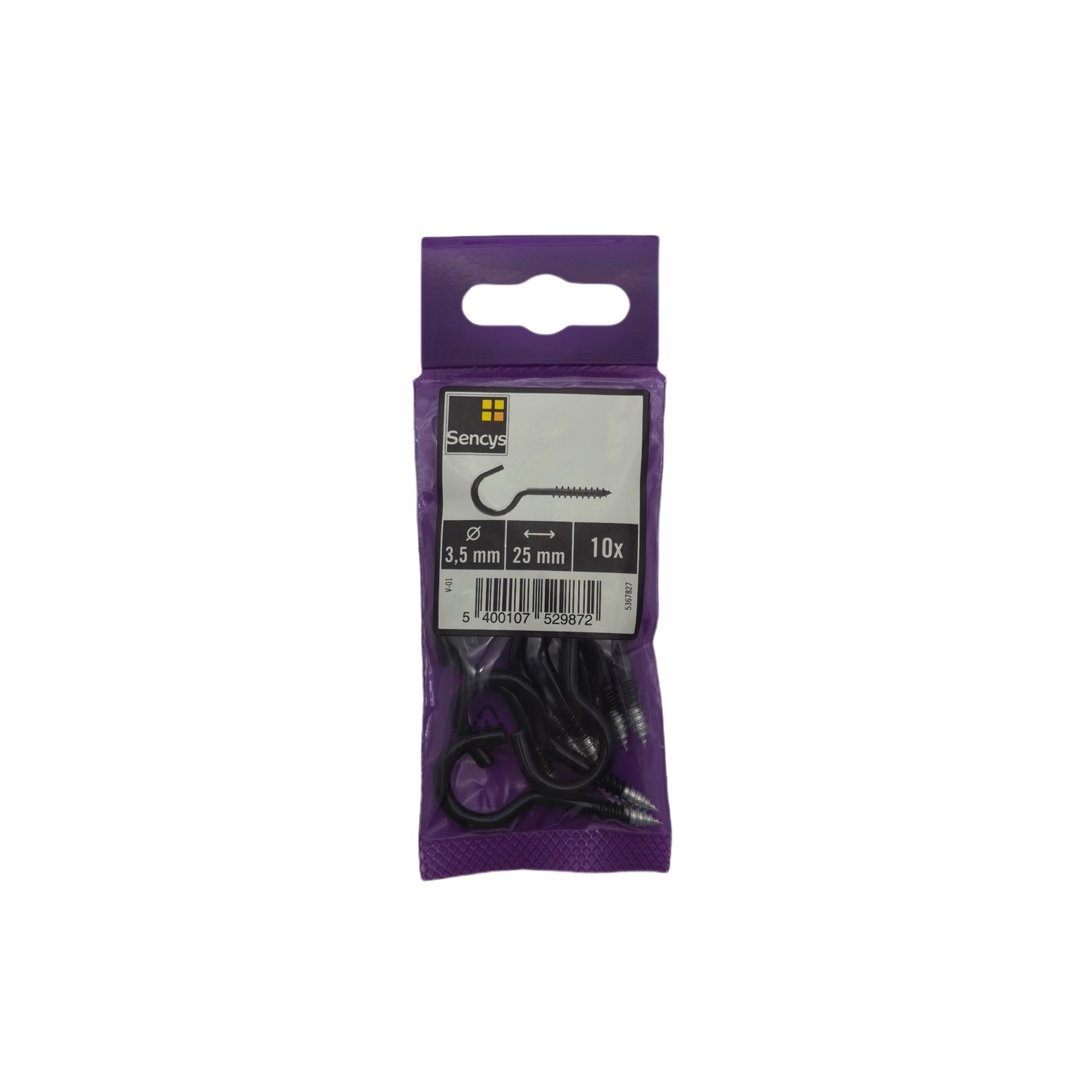 Deze schroefhaak van Sencys is black coated. Ze zijn per 10 stuks verpakt.