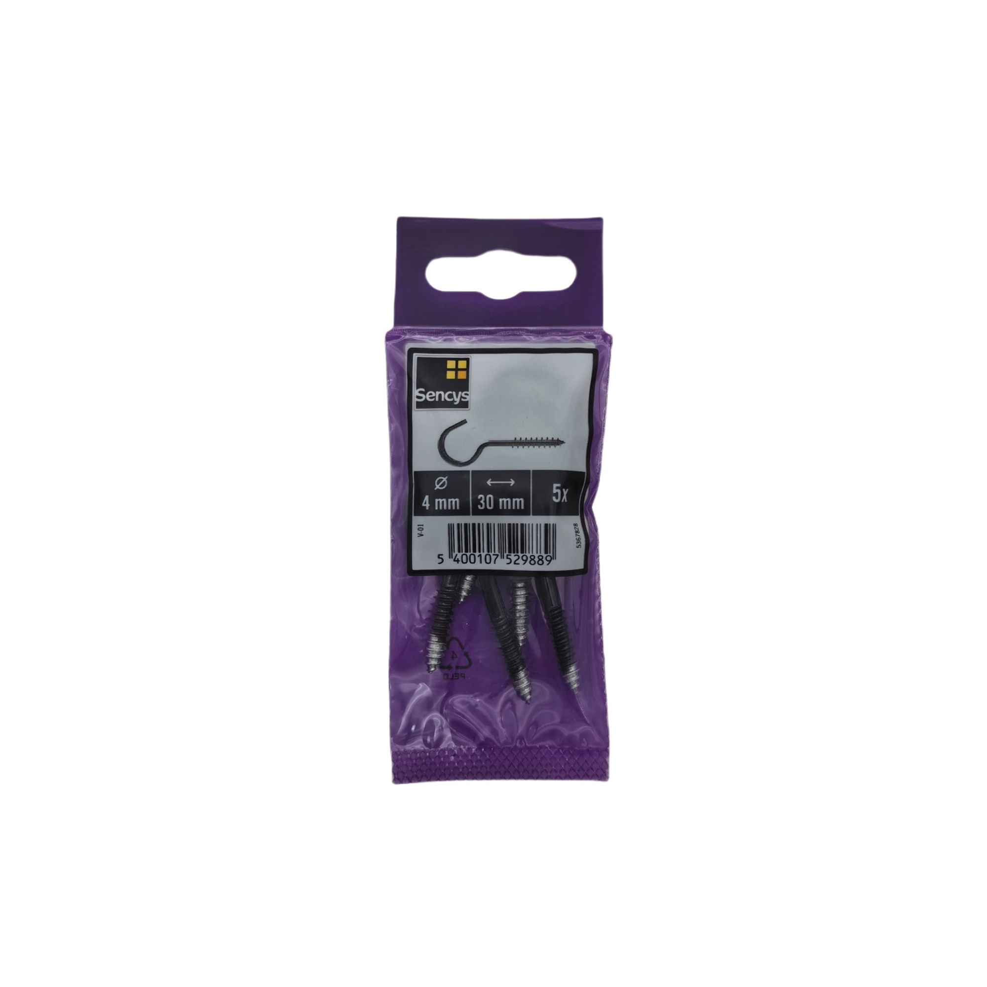 Deze schroefhaak van Sencys is black coated. Ze zijn per 5 stuks verpakt.