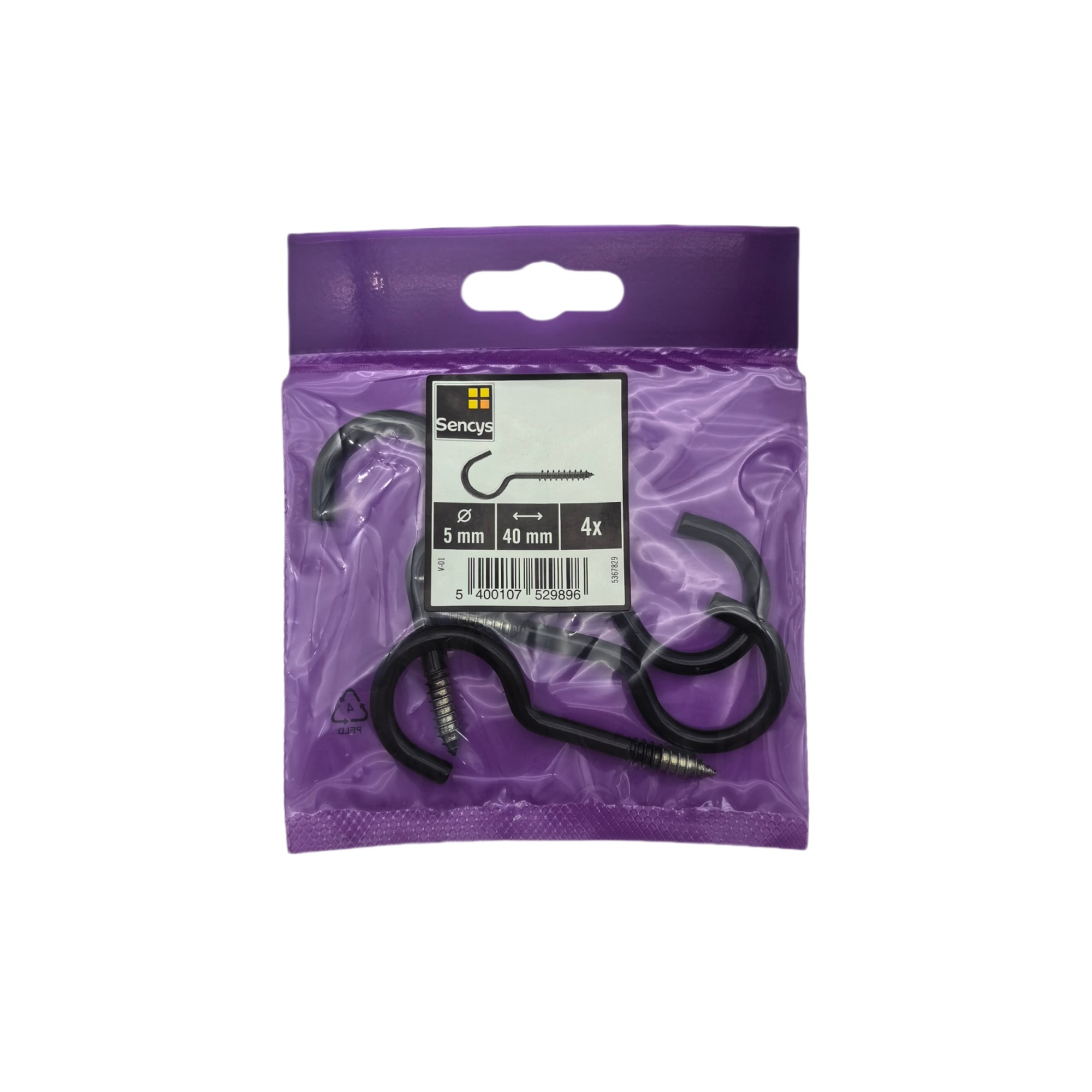 Sencys schroefhaak black coated 5mm 40mm 4 stuks