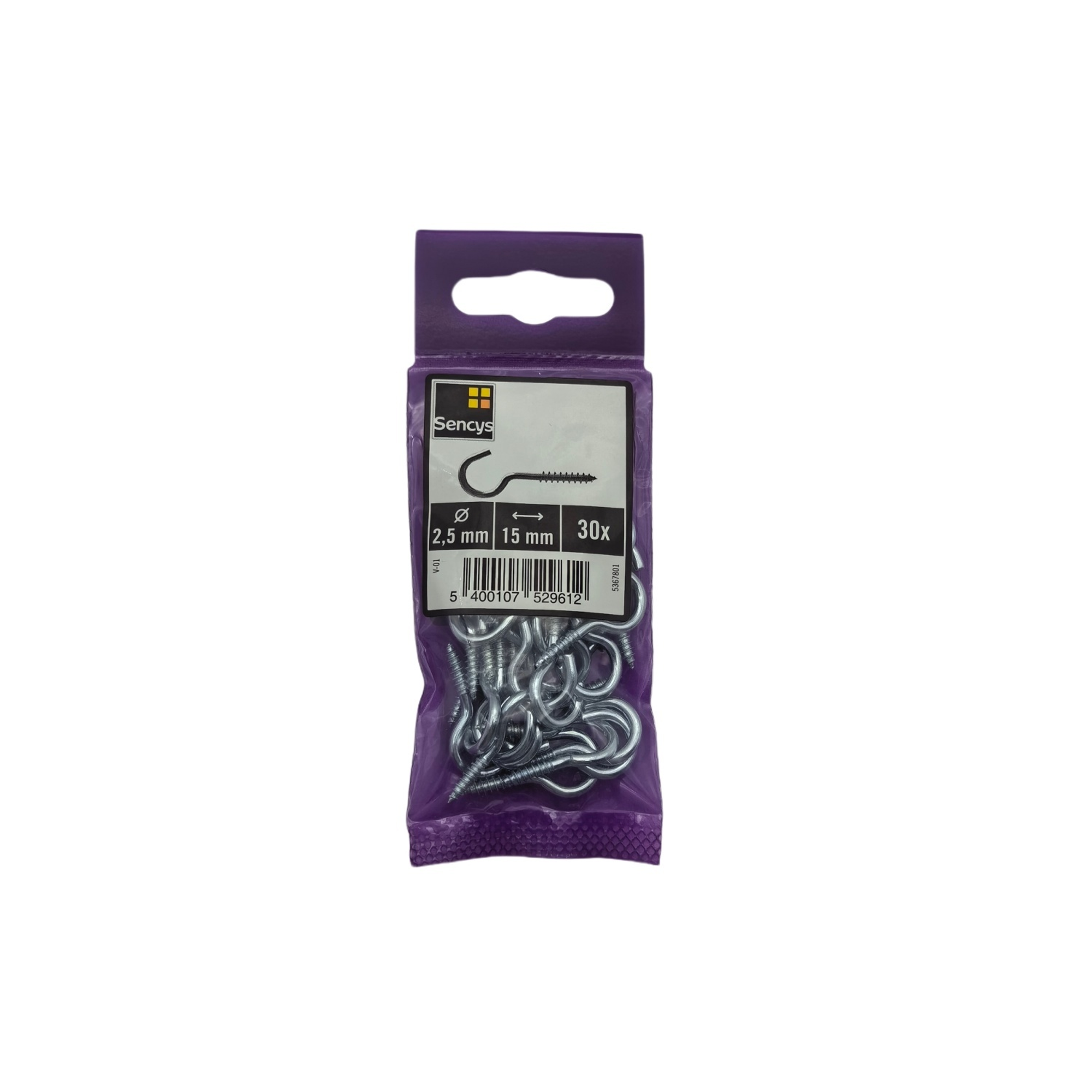 Deze schroefhaak van Sencys is gegalvaniseerd. Ze zijn per 30 stuks verpakt.