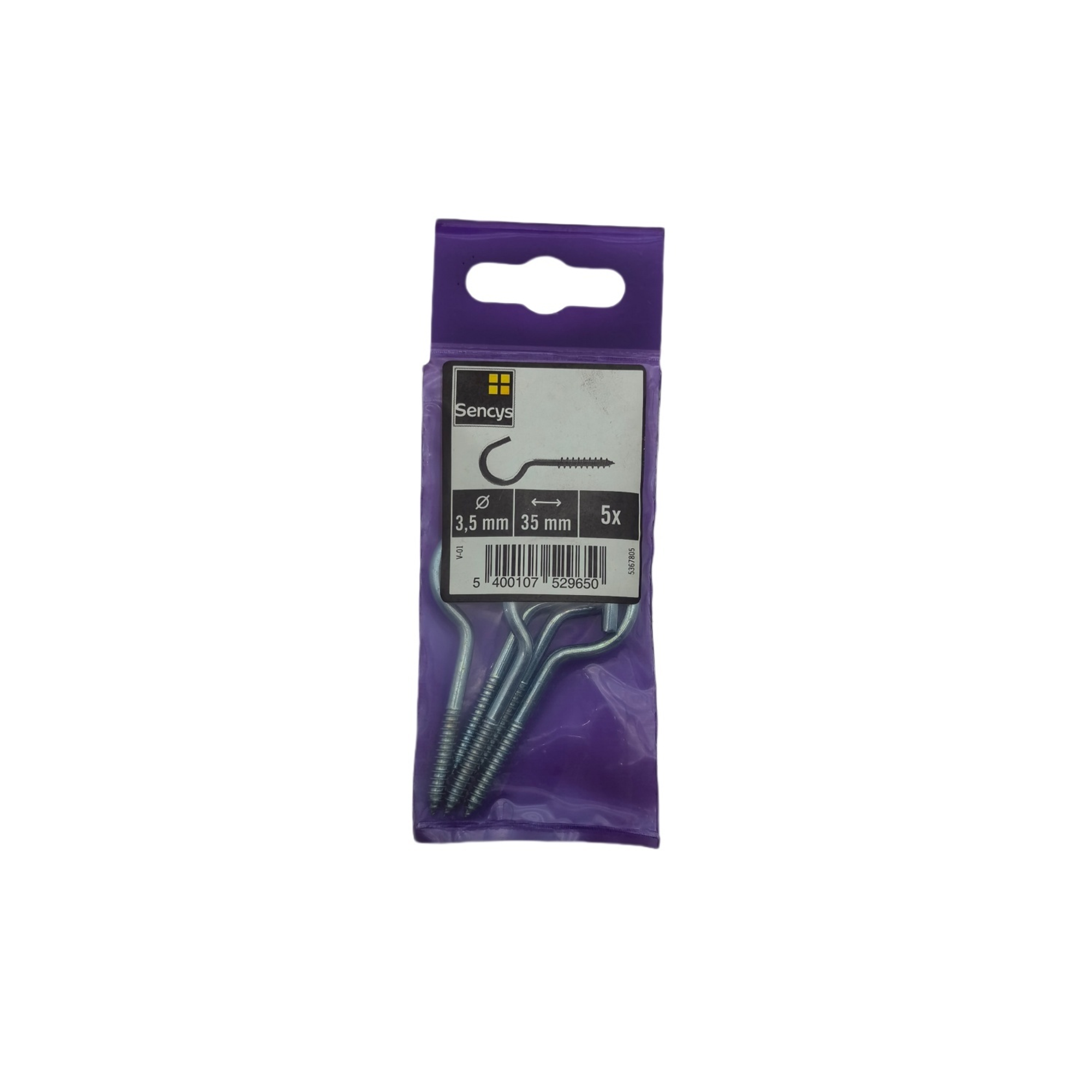 Sencys schroefhaak gegalvaniseerd 3,5mm 35mm 5 stuks