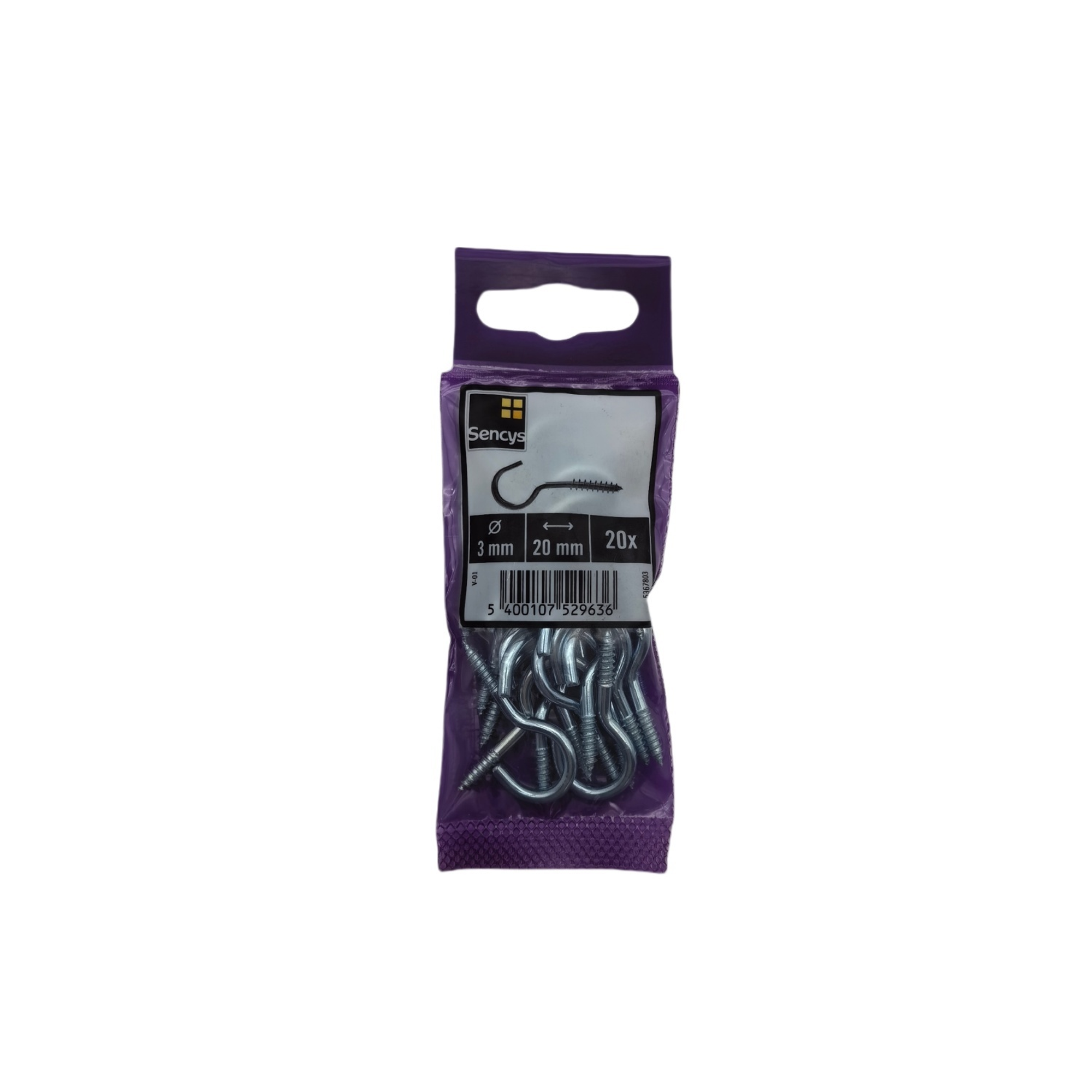 Deze schroefhaak van Sencys is gegalvaniseerd. Ze zijn per 20 stuks verpakt.