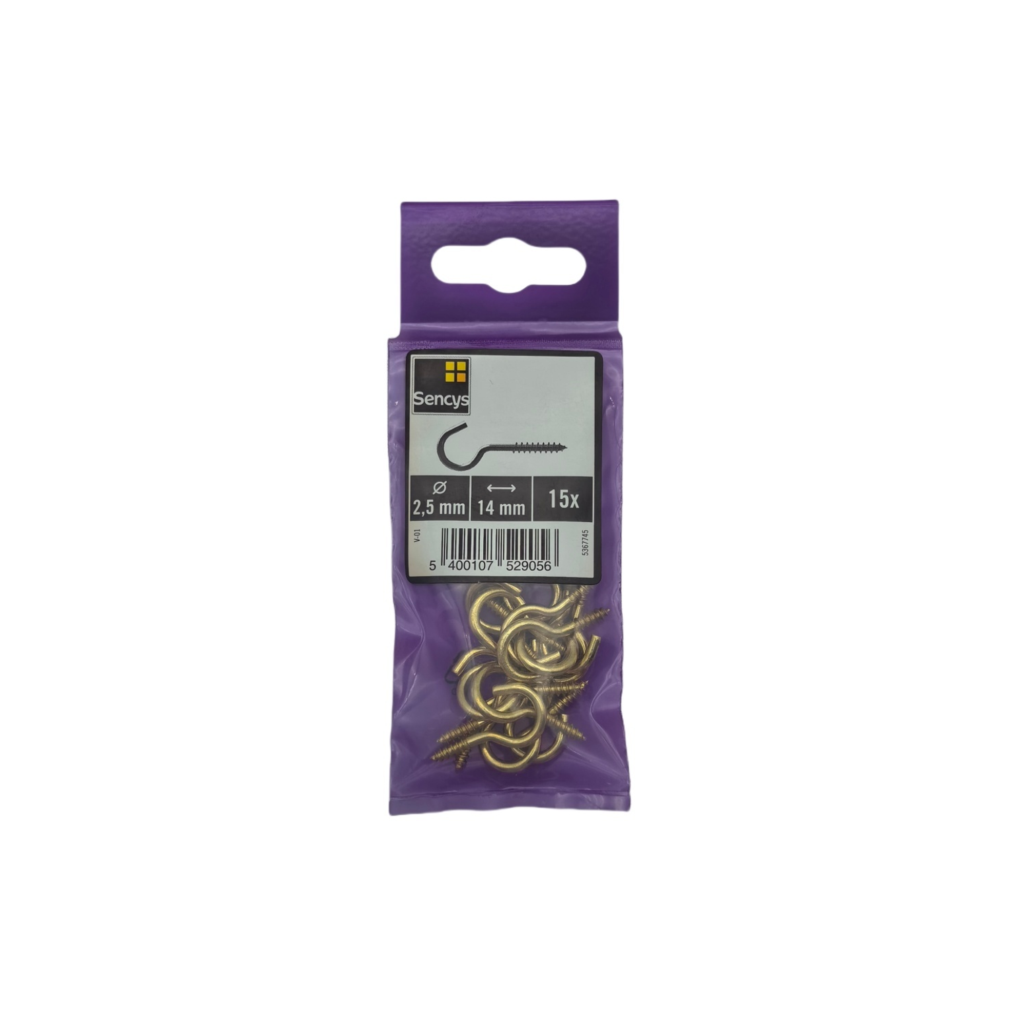 Deze schroefhaak vermessingd van Sencys is gemaakt van Brass plated. Ze zijn per 15 stuks verpakt.