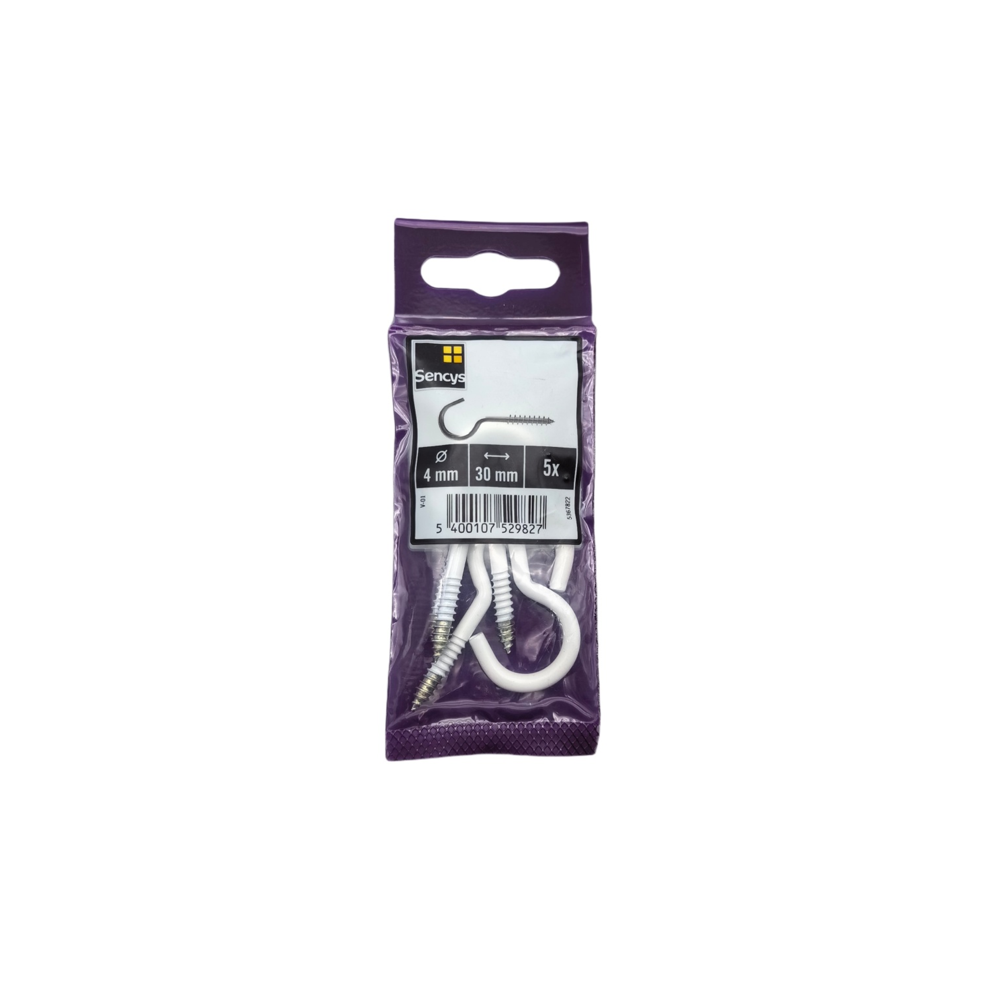 Sencys schroefhaak white coated 4mm 30mm 5 stuks
