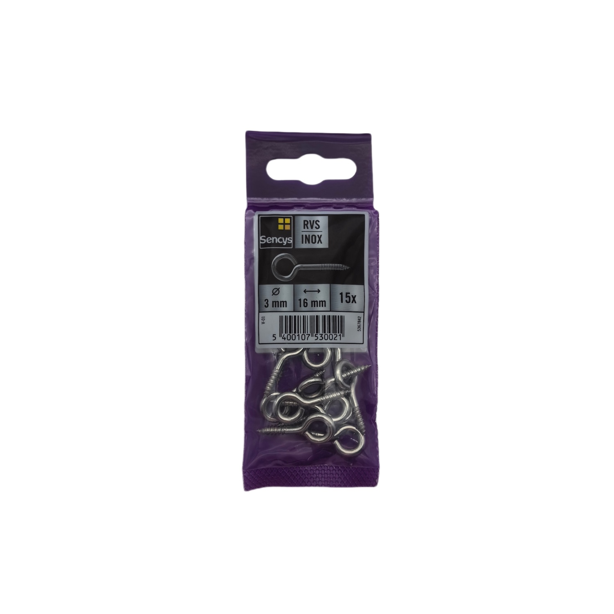 Sencys schroefoog RVS 3mm 16mm 15 stuks