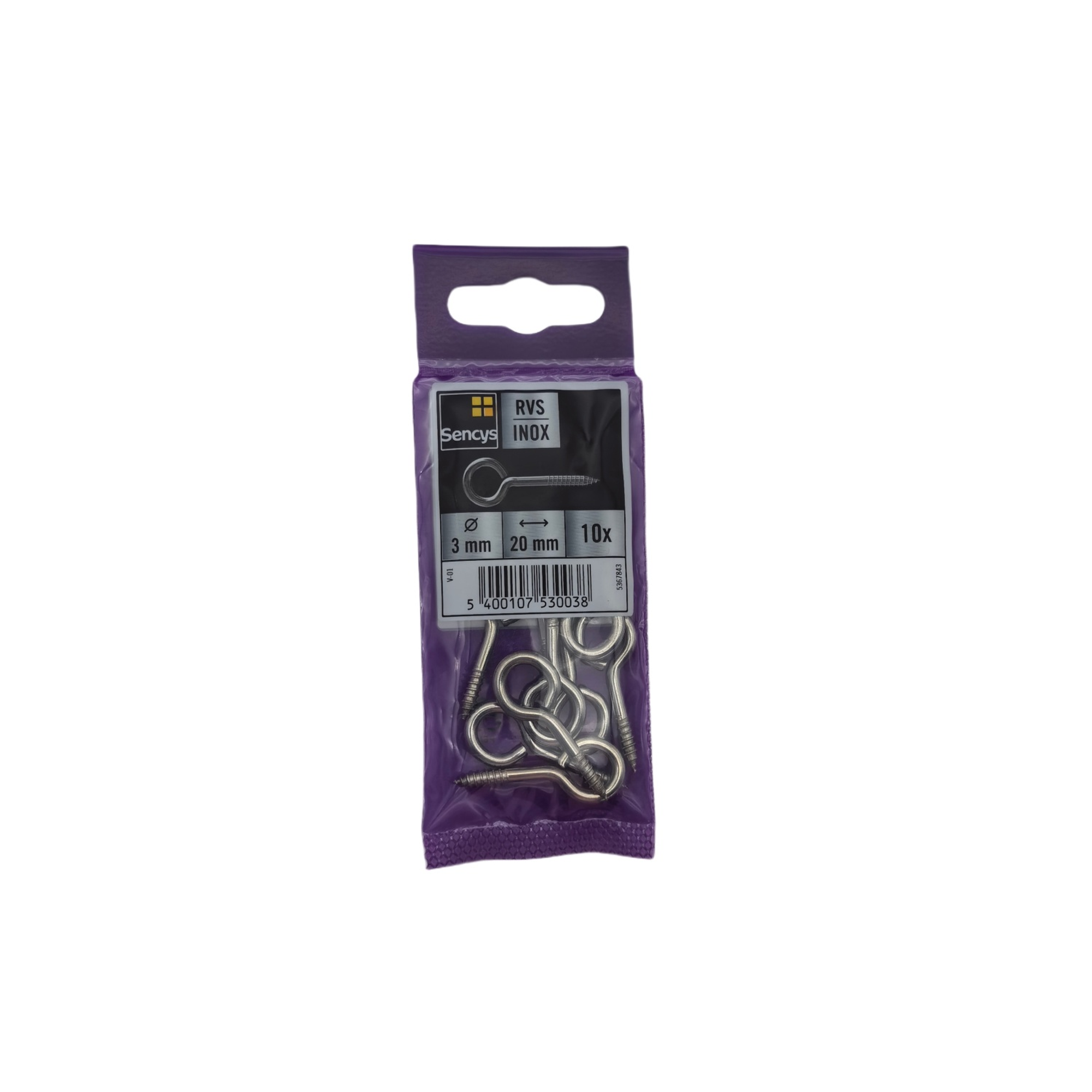 Sencys schroefoog RVS 3mm 20mm 10 stuks