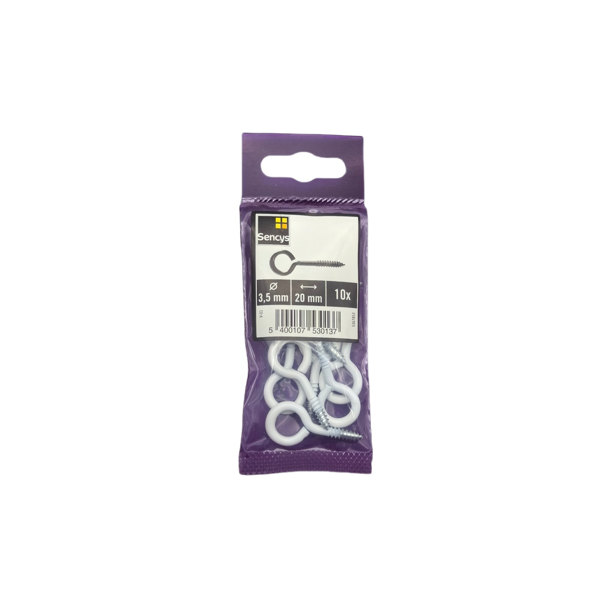Sencys schroefoog white coated 3,5mm 20mm 10 stuks