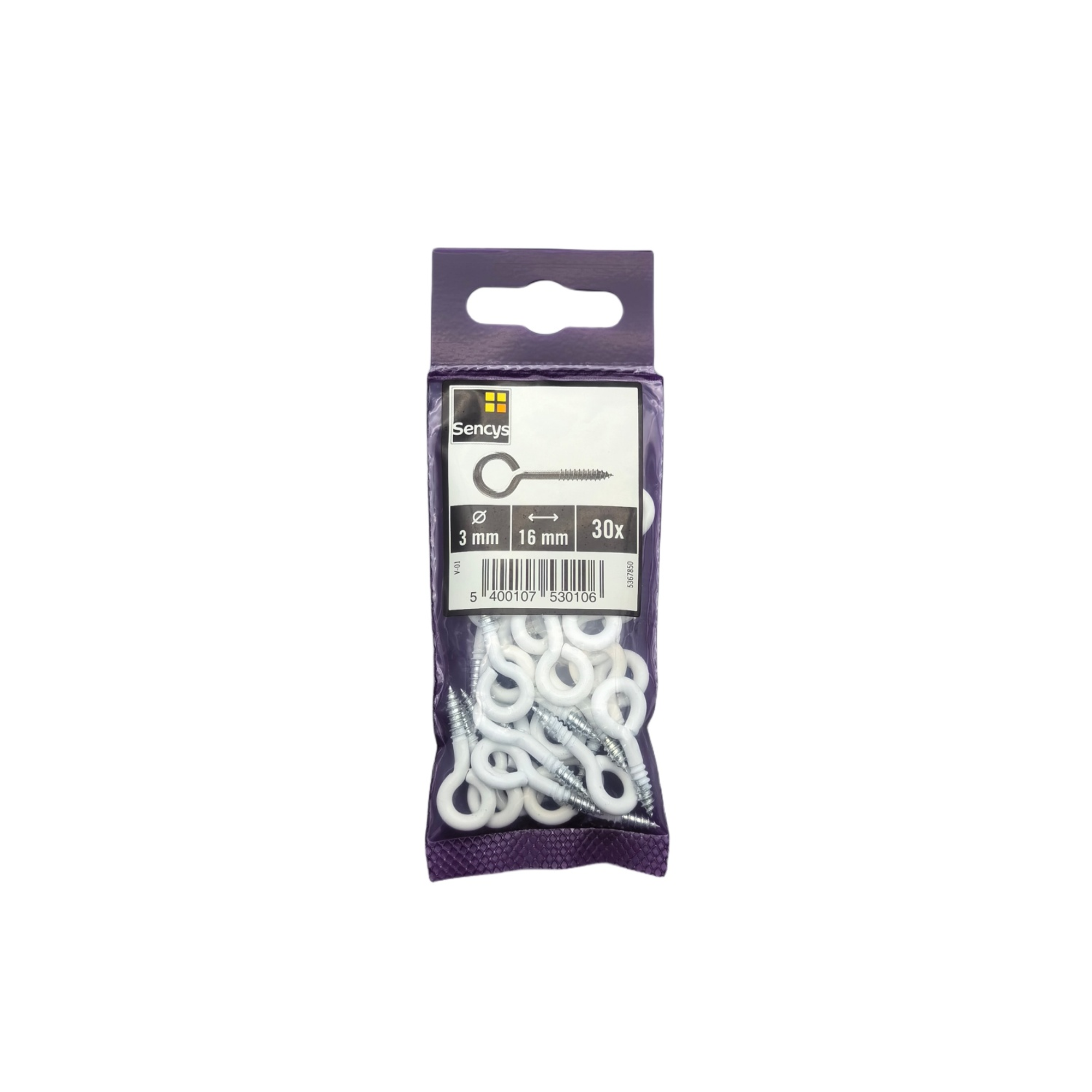 Sencys schroefoog white coated 3mm 16mm 30 stuks