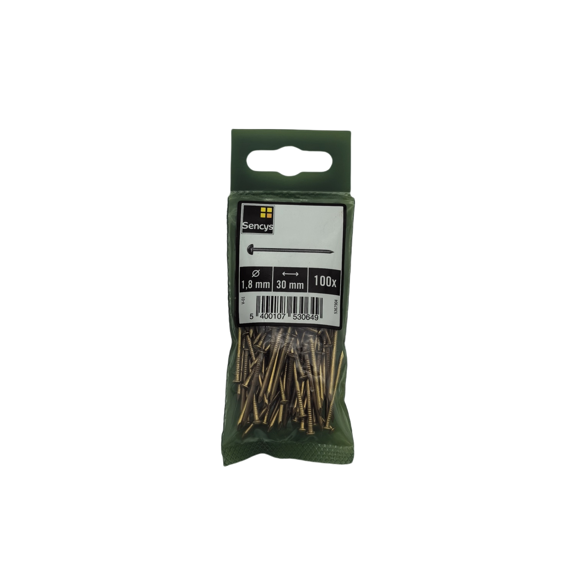 Sencys spijker met ronde kop messing 1,8mm 30mm 100 stuks